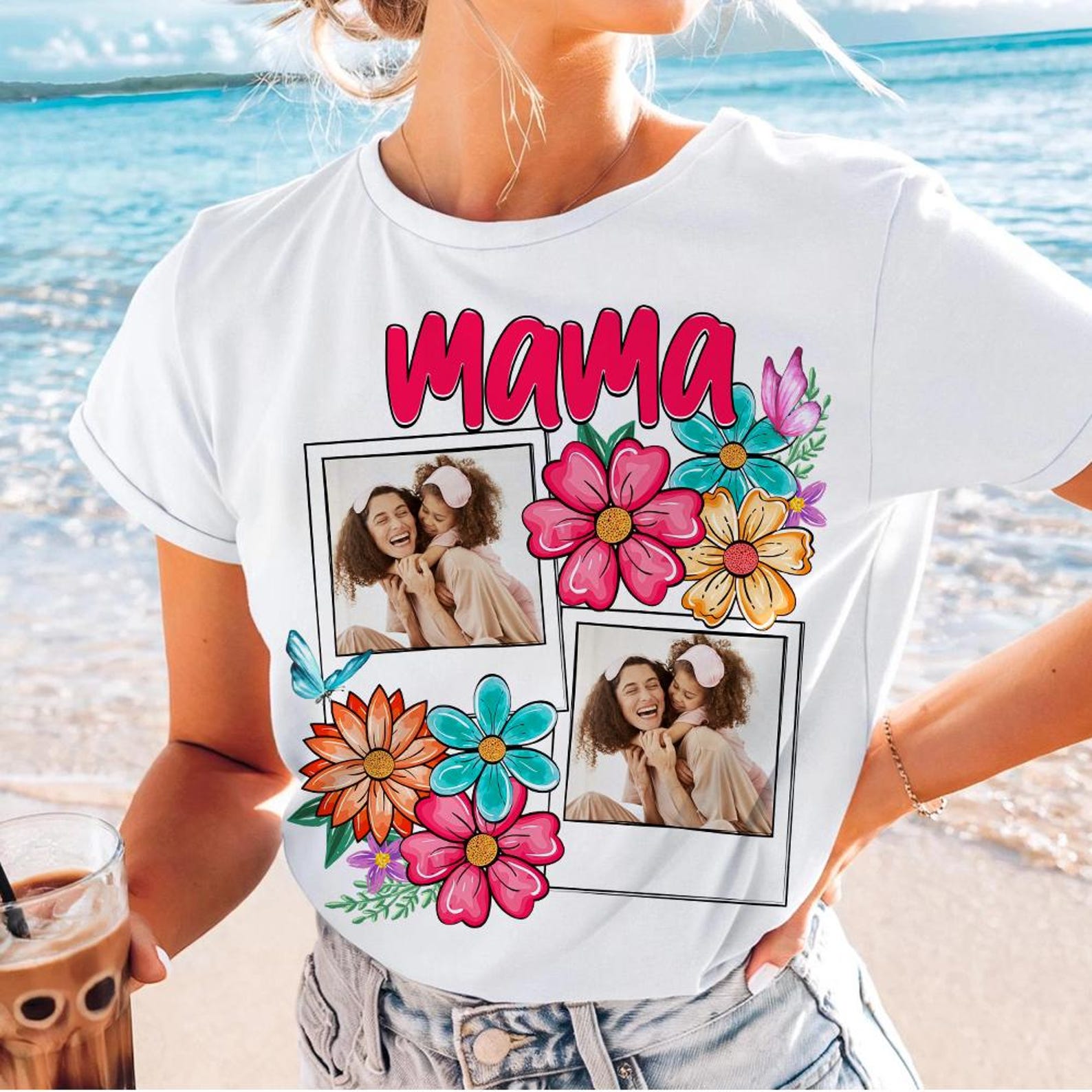Custom Mama Kids Photo, Mothers Day Mom Floral Flowers Shirt, Hand drawn, Gift For Mom