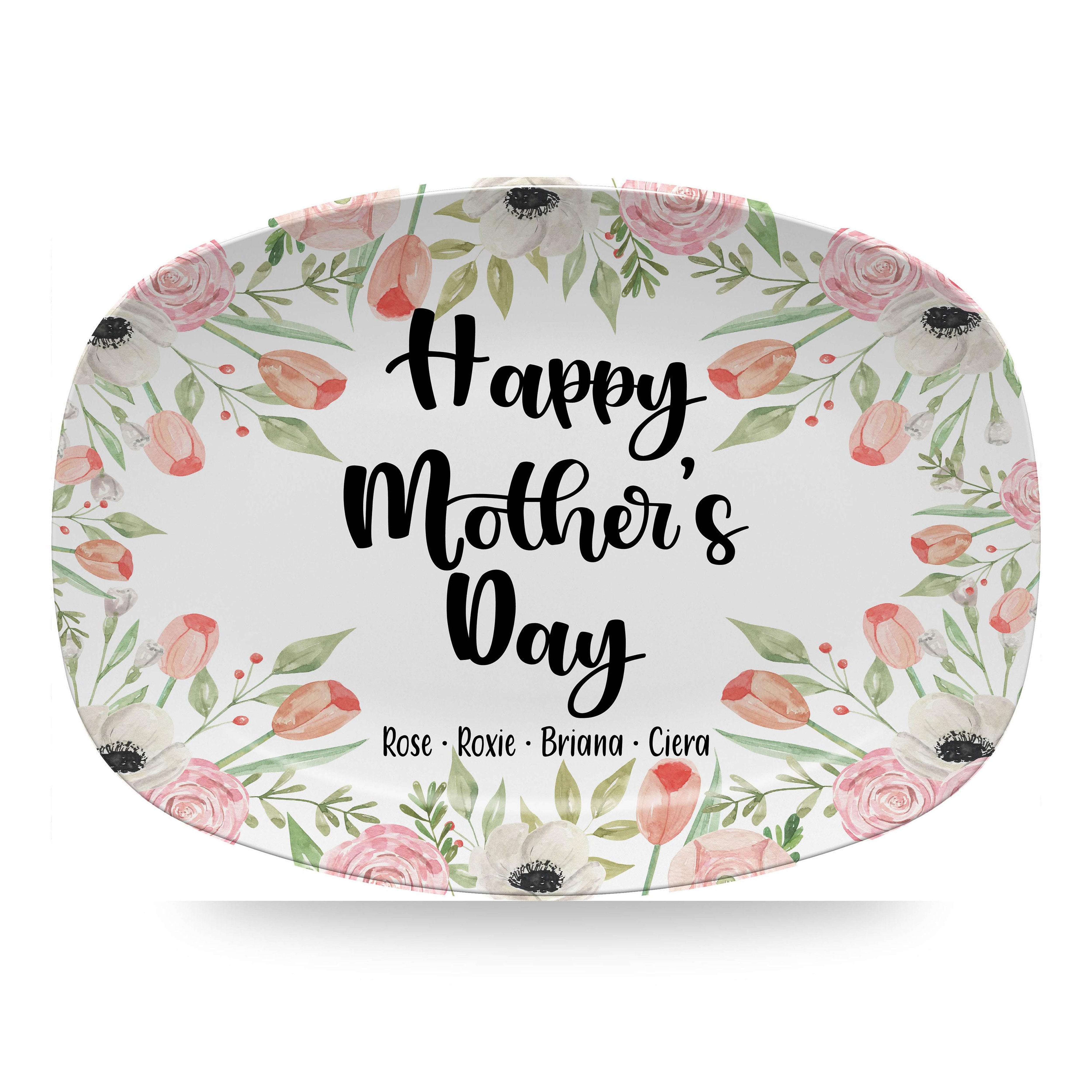 Floral Happy Mother's Day - Personalized Platter - Gift For Mom, Mother's Day, Birthday Gift