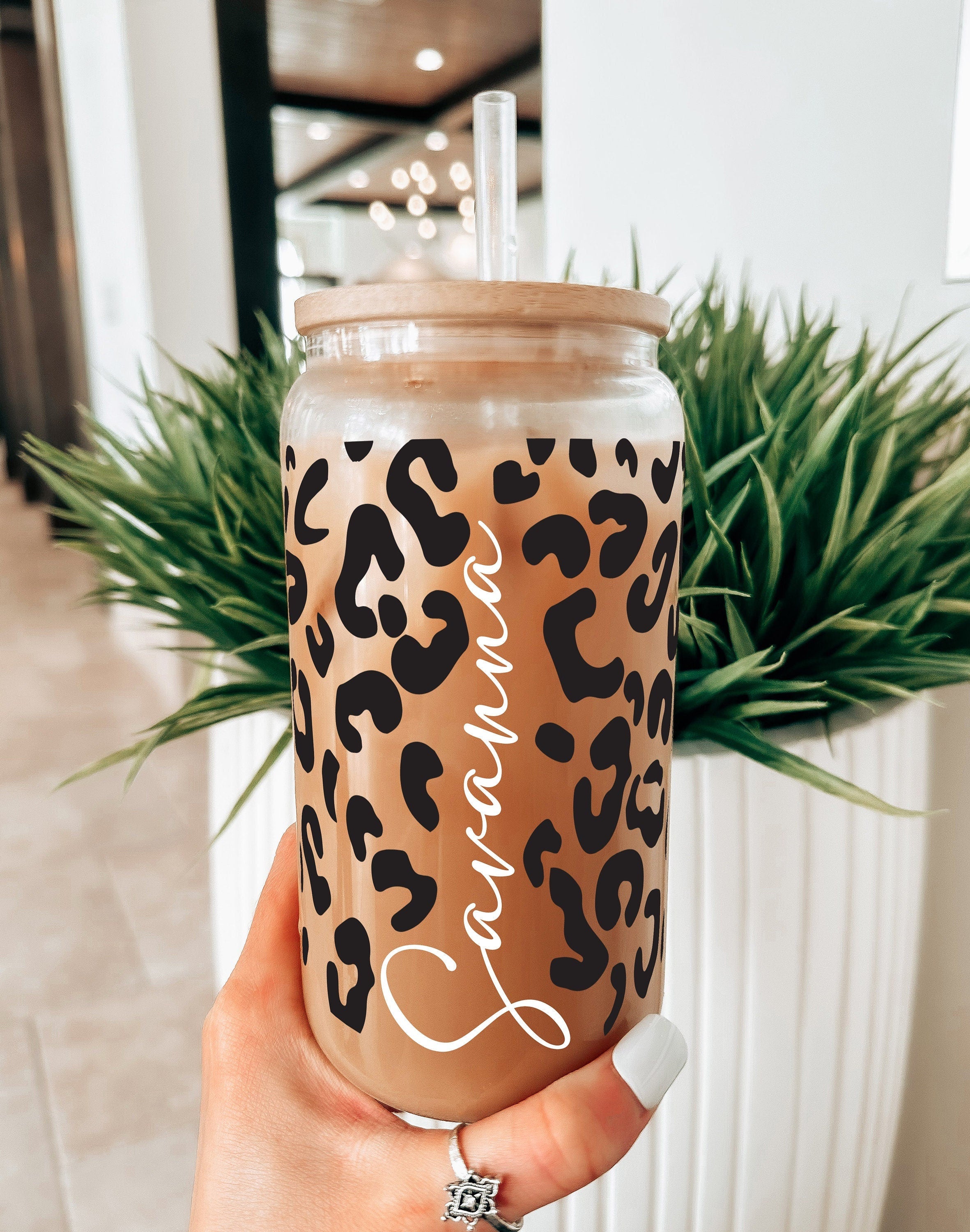 Leopard Iced Coffee Cup Cheetah Personalized Name Iced Coffee Cup Gift, Personalized Iced Coffee Cup Glass, Beer Can Iced Coffee Cup Leopard