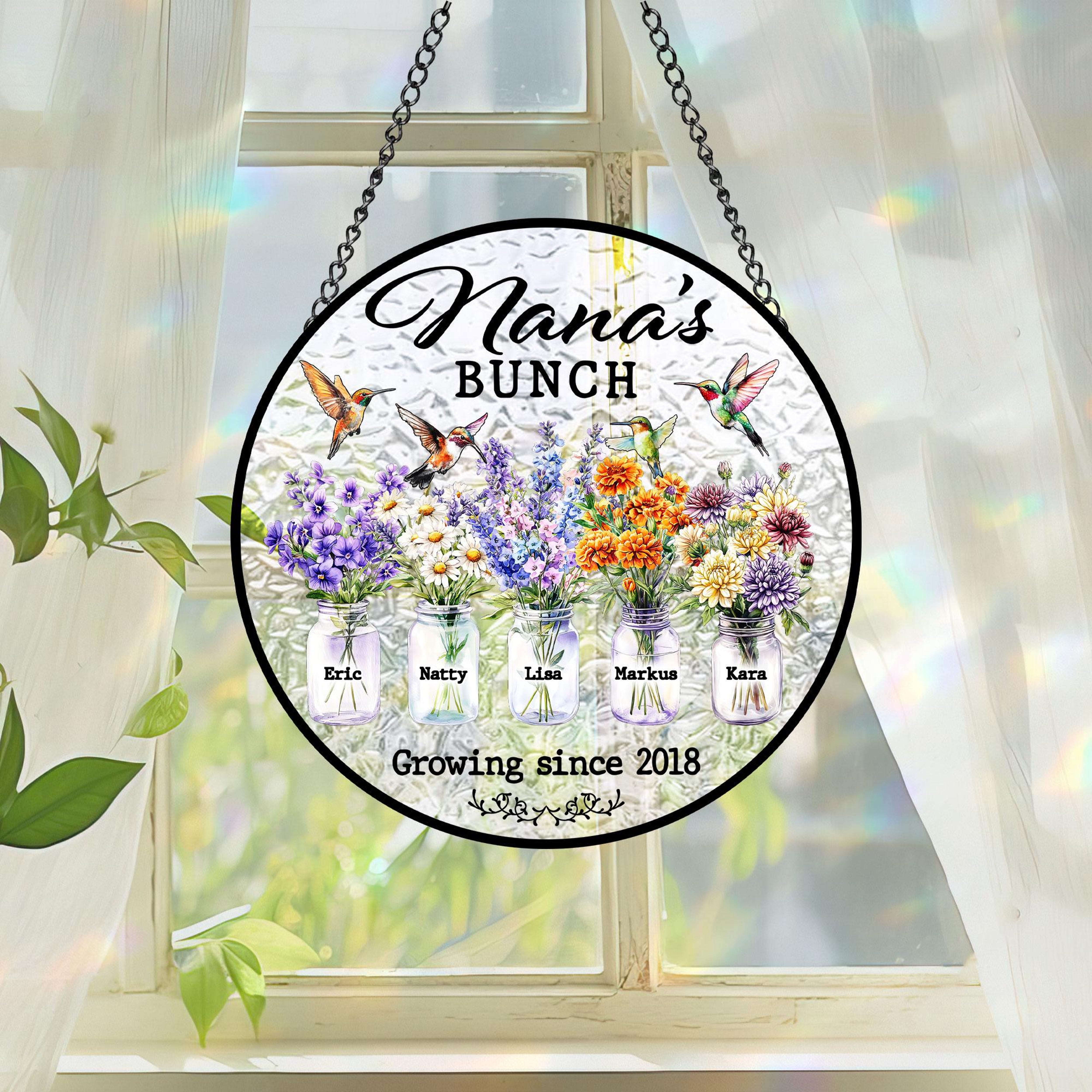 Nana's Bunch - Personalized Suncatcher Stained Glass - Window Hanging Decor Gift For Mom, Grandma, Mother's Day Gift