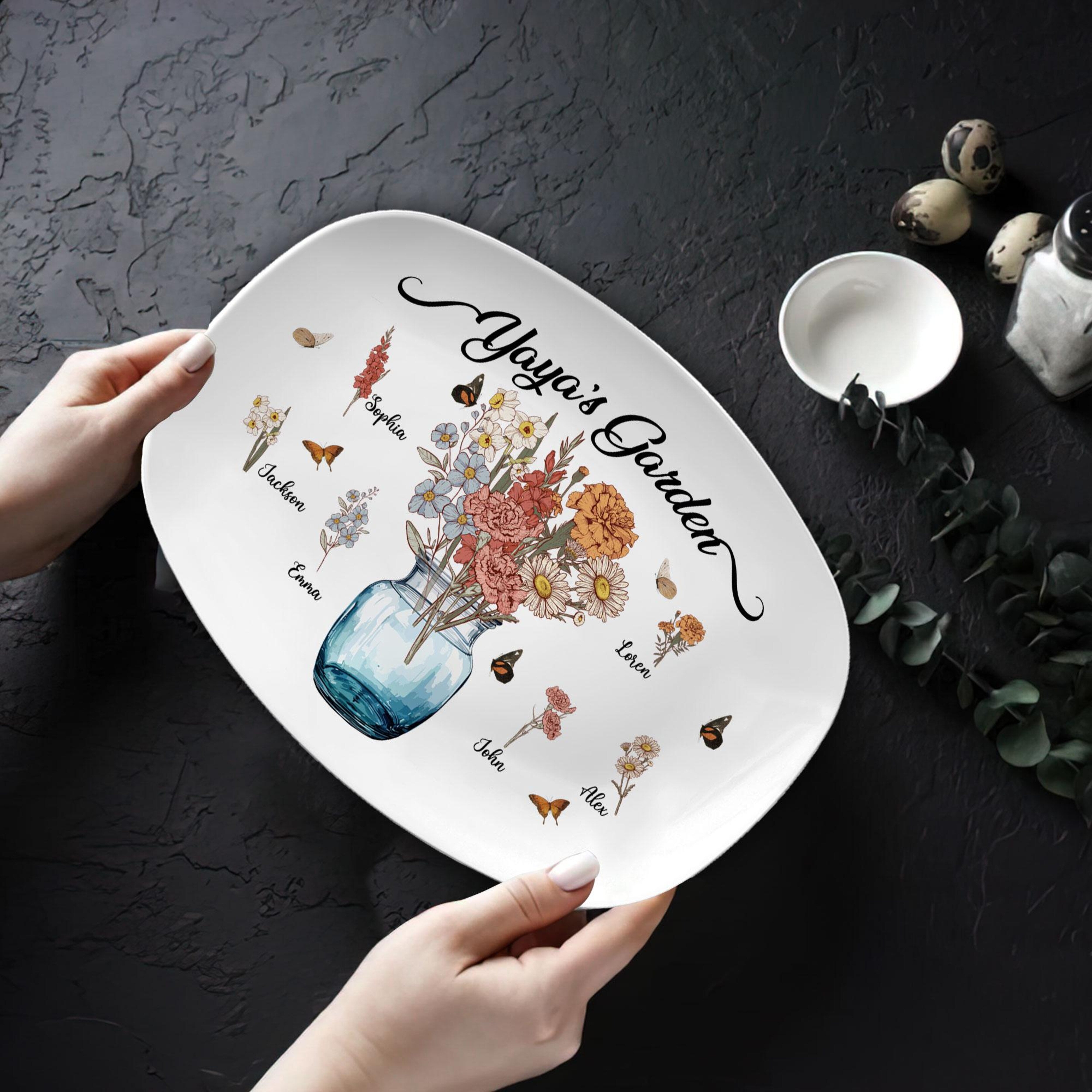 Personalized Mommy's Garden Platter, Custom Mom Plate With Kids Names, Birth Flower Platter, Mother's Day Gift for Mom, Mother, Mommy