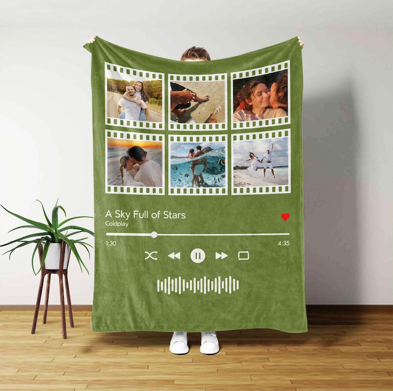 Personalized Music Blanket your photo & music favorite song Gift Blanket Great Couples Boyfriend Girlfriend Birthday Gift Mom Gift
