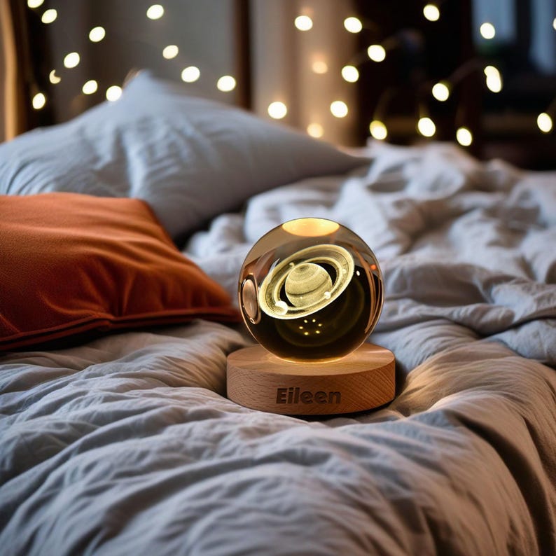 What’s included: 1 crystal globe and 1 wooden LED base with a USB power cable.