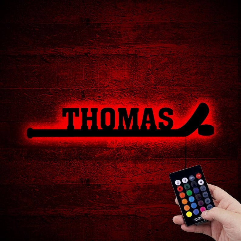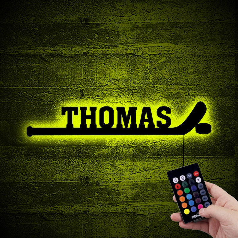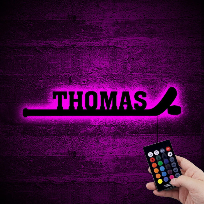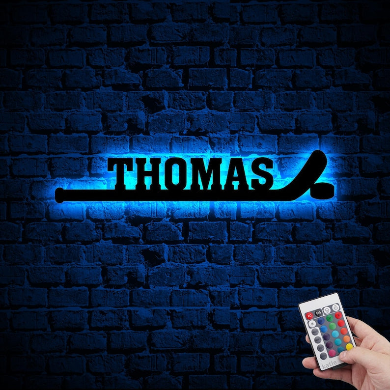 Hockey Player Stick With Kids Name Neon Led Wall Decor,Boys Led Sign,Ice Hockey Lover Neon Room,Birthday Gift,Personalized Name Boy Led Sign