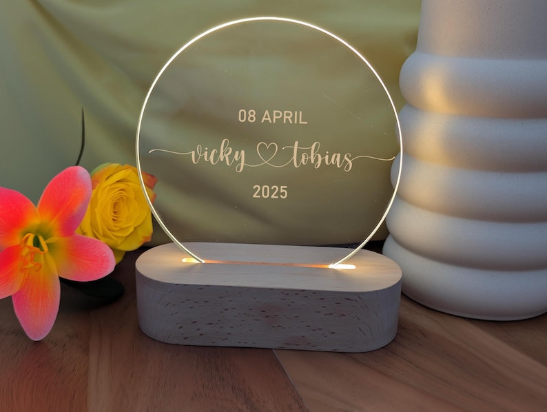 Personalized heart acrylic lamp with engraving names & date LED night light wedding gift.Gift.Christmas gift for her and him.