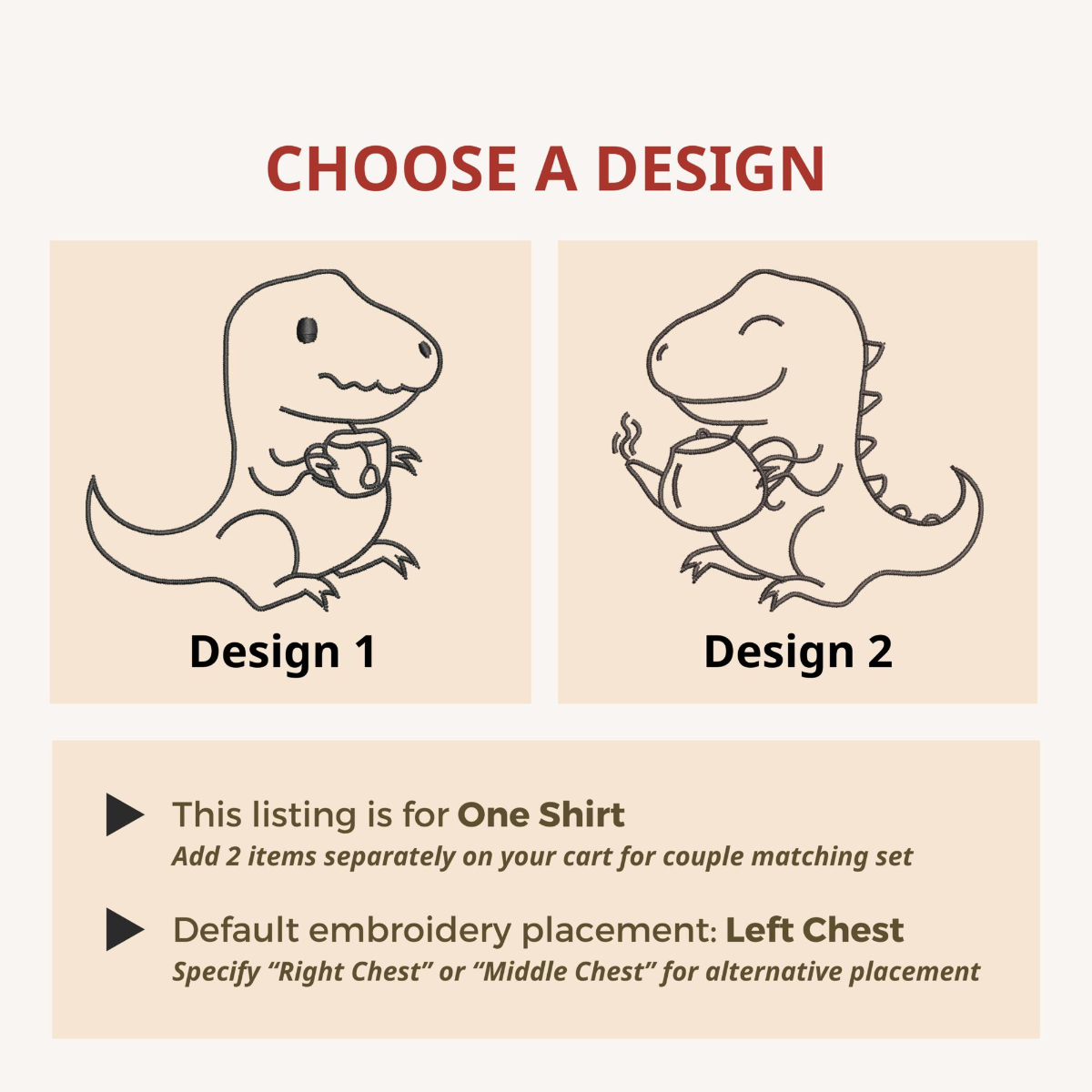 Tea-Rex Embroidered Apparel, Embroidered Roman Numeral Matching Couple Shirt, Gifts For Couples