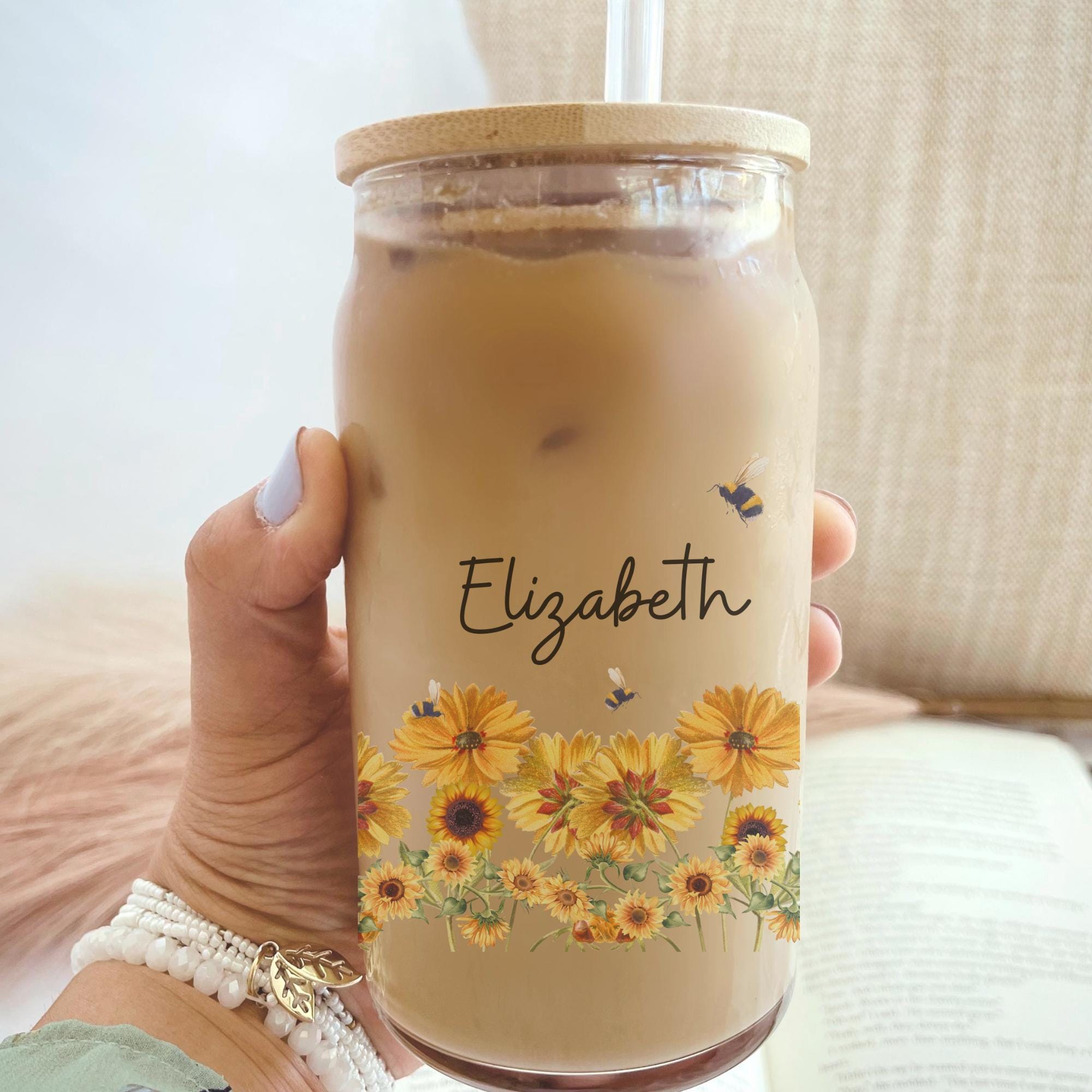 These clear or frosted glass tumblers / glass cans are personalized with the name and flower of your choice. Featuring a bamboo lid to accommodate straw usage as well as easy sipping. An inner seal ring completes the secure, push on lid to minimize accidental leakage. Paired with a reusable durable straw with a ring stopper. These make the perfect gift for a friend or yourself!