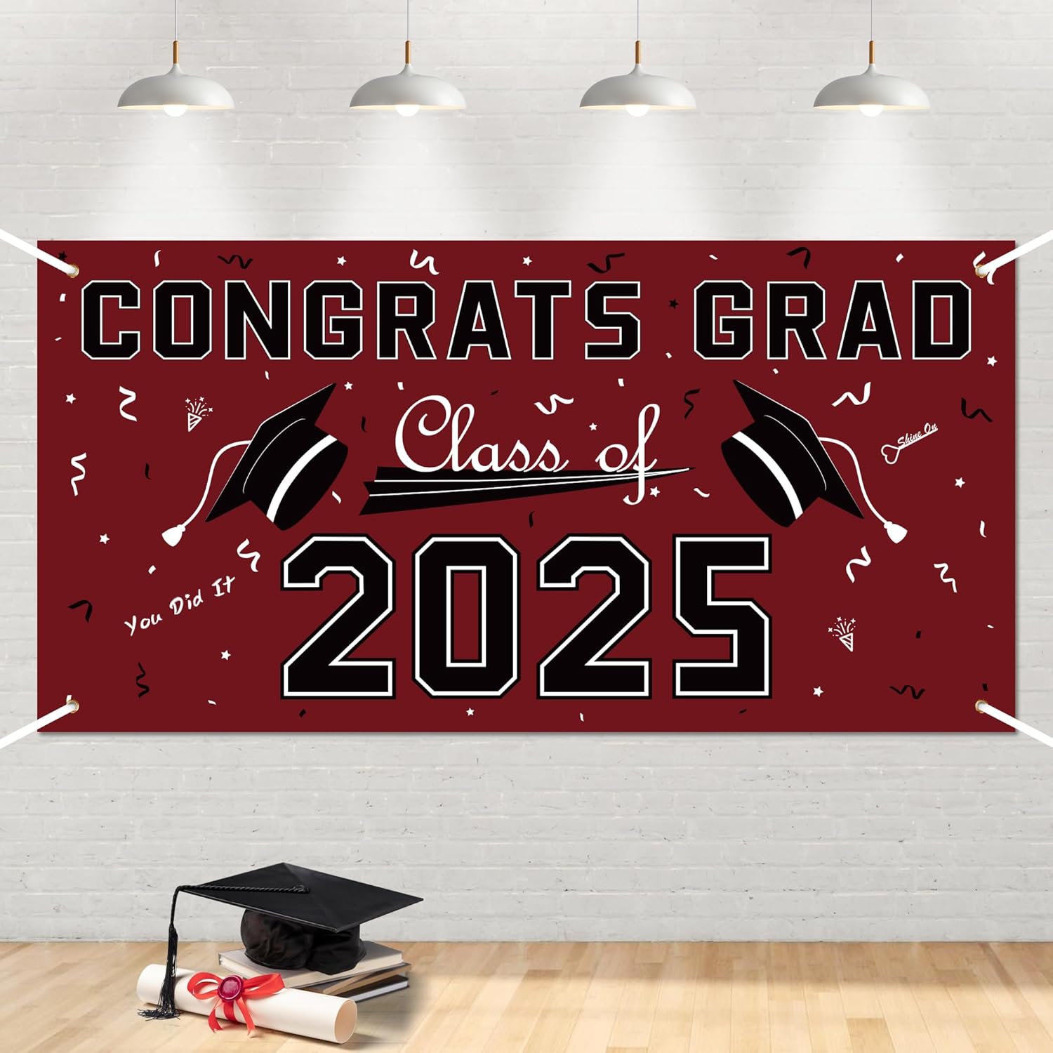 Graduation Decorations 2025 - Graduation Backdrop - Graduation Party Decorations - Congrats Grad Banner - Graduation Decorations Class of 2025,Graduation Party Favors Supplies Yard Sign