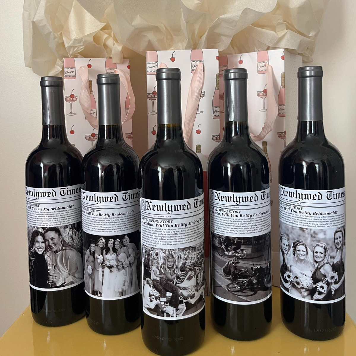Personalized Birthday Gift, Graduation, Bachelorette, Bottle Labels for Wine, Champagne, Times Newspaper Photo