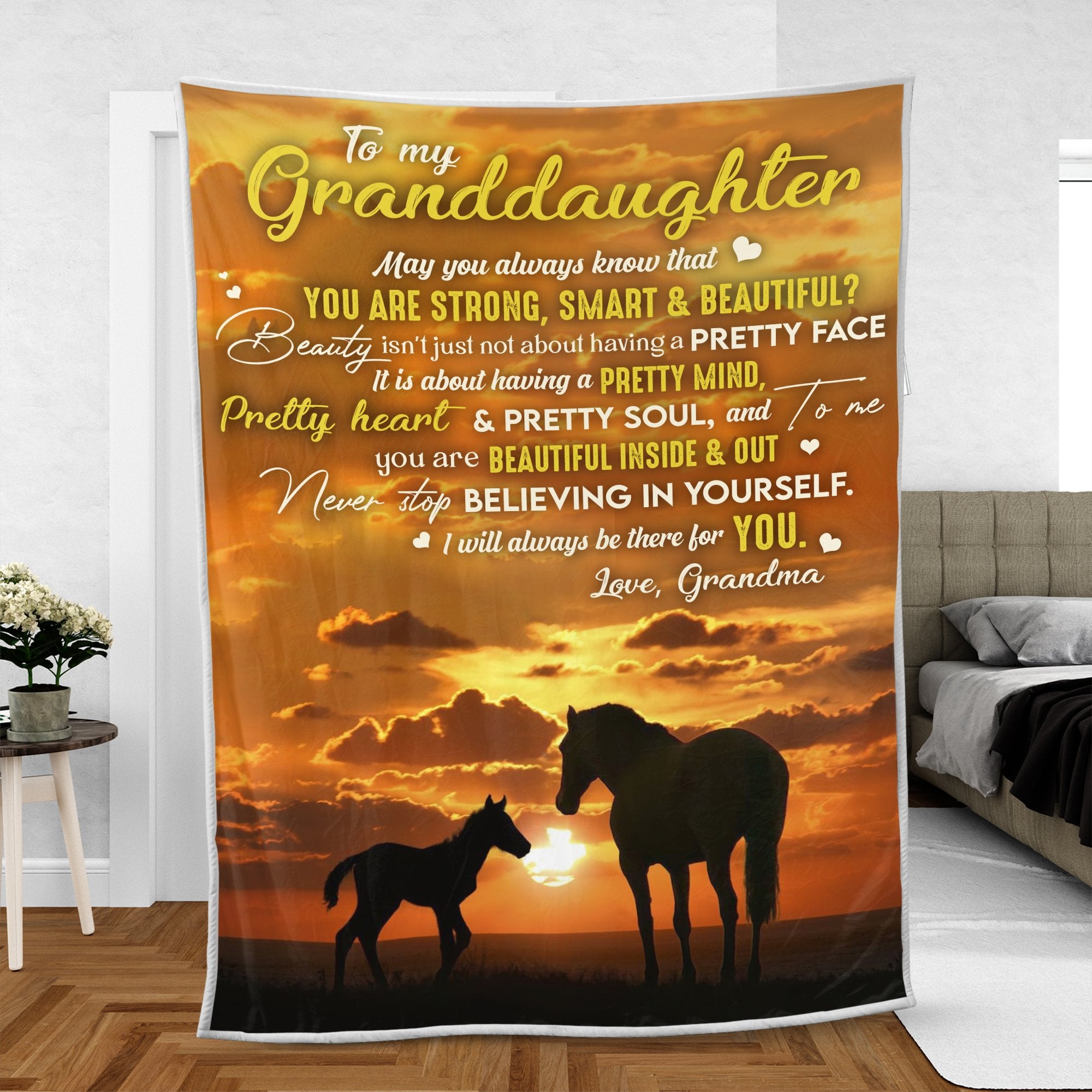 If you're looking for Gifts For Granddaughters, it may be difficult but here at Bestcustom we have a few suggestions for you: Personalized Throw Blankets with her name or photo, or Personalized Doormat featuring a favorite quote or image. A personalized gift is a thoughtful way to show your granddaughter how much she means to you. It also makes the gift extra special and unique, as it is tailored specifically to her. Consider her interests and personality when choosing a personalized gift, and it is sure to be well-received.