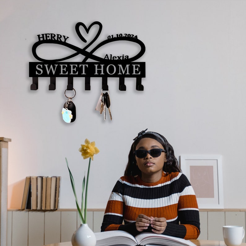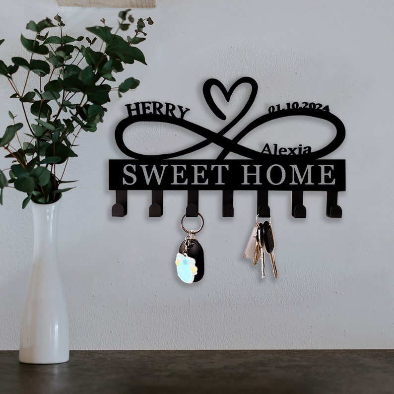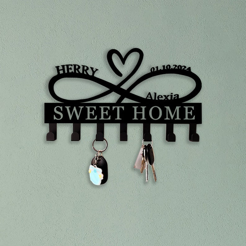 Custom Heart Key Holder, Wall Decor, Infinity Heart Key Hooks, Housewarming Gift, Personalized Infinity Metal Sign, Mothers Day Gift
