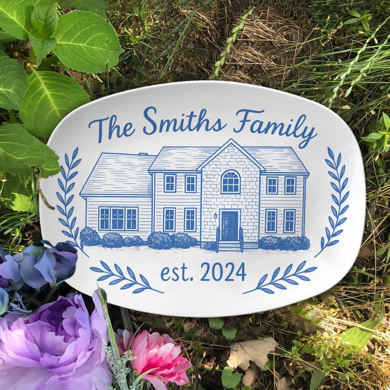 Custom House Portrait Platter | Personalized Family Home Plate | Housewarming Gift New Home Established Dish | Homeowner Keepsake DECOR only