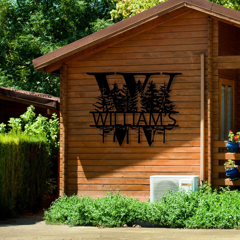 Custom Pine Tree Design Monogram Metal Sign, Family Name Sign, Forest Style Monogram, Last Name Decor, Personalized Wedding Anniversary Gift