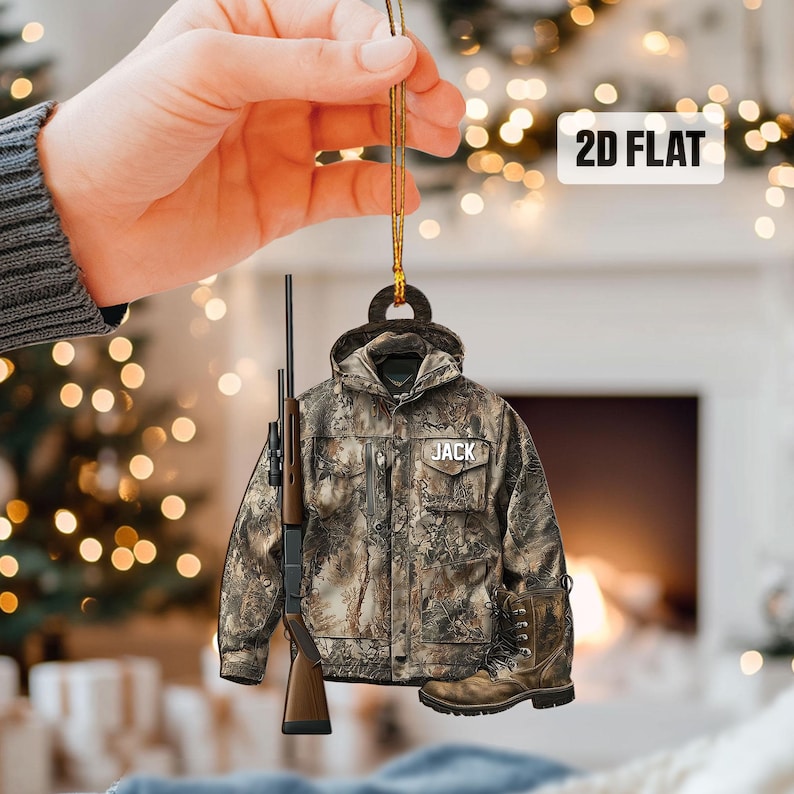 Personalized Hunting 2D Flat Ornament, Custom Hunting Christmas Tree Ornament, Hunting Vest Christmas Decor, Gift for Hunter, Dad, Husband