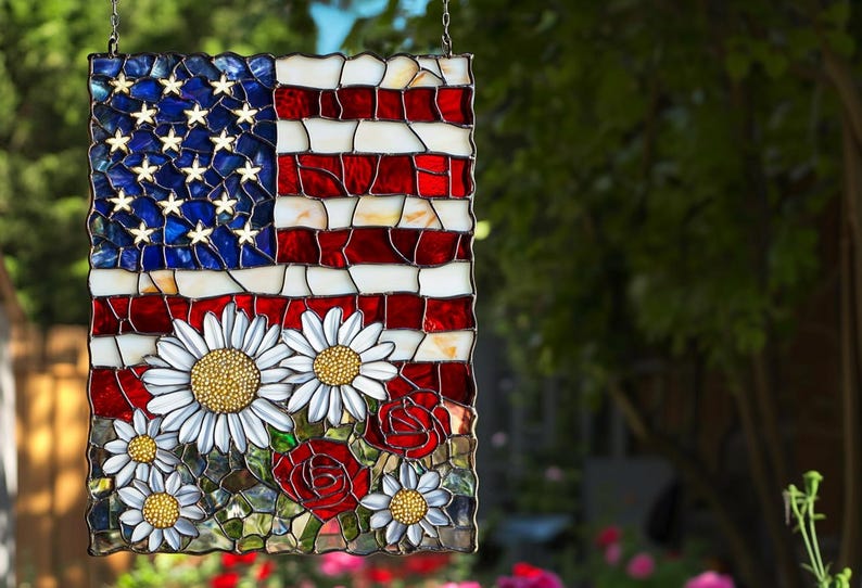 Sized at 6.4 inch and 7.85 inch , this captivating glass suncatcher effervesces with brilliance in the sunlight, adorned with a vibrant hummingbird and flowers in a kaleidoscope of hues. Every piece is meticulously hand-soldered and reinforced with zinc strips along the outer edge, ensuring its lasting strength. Thoughtfully, two secure hanging hooks are seamlessly incorporated at the top for effortless display.
