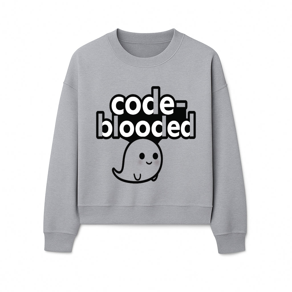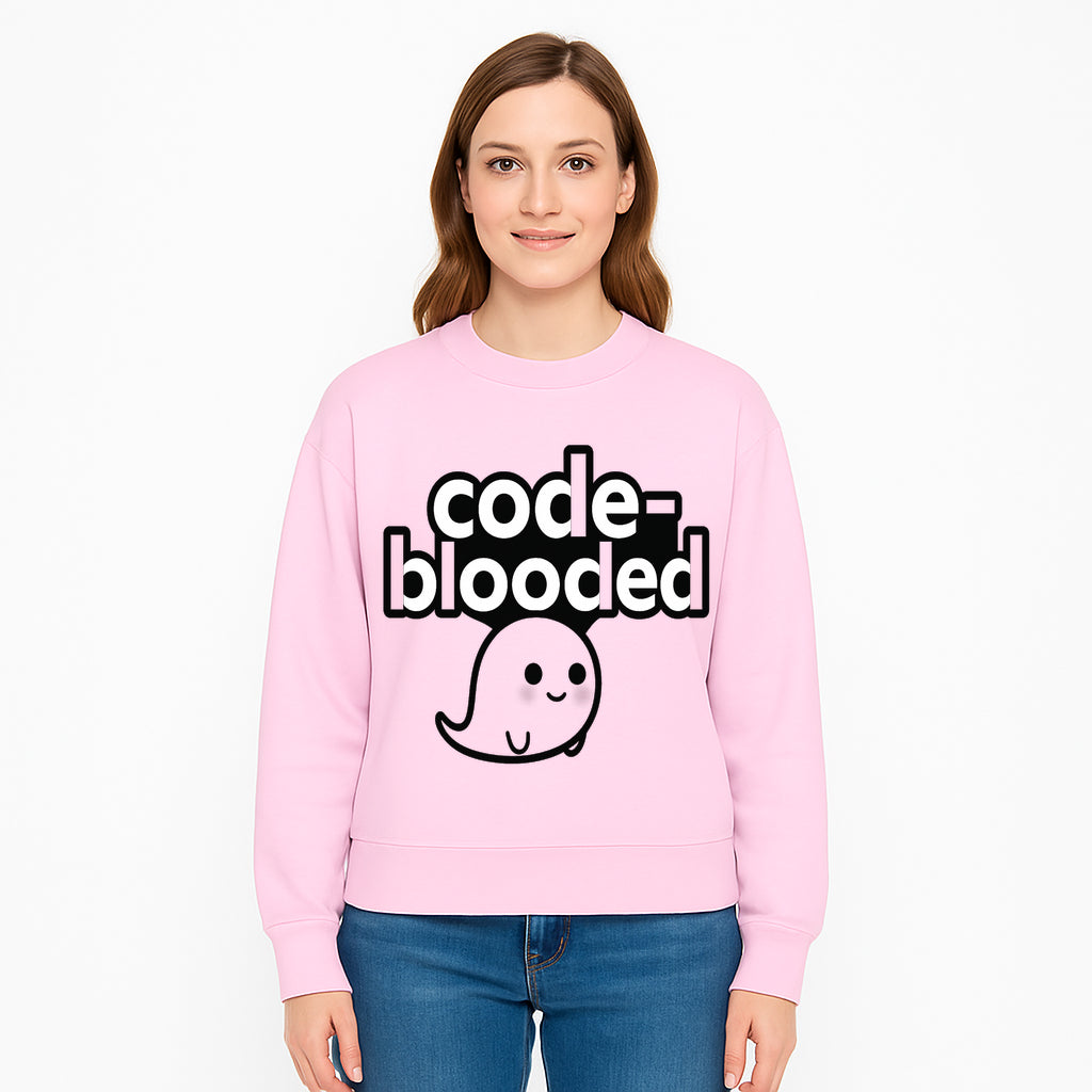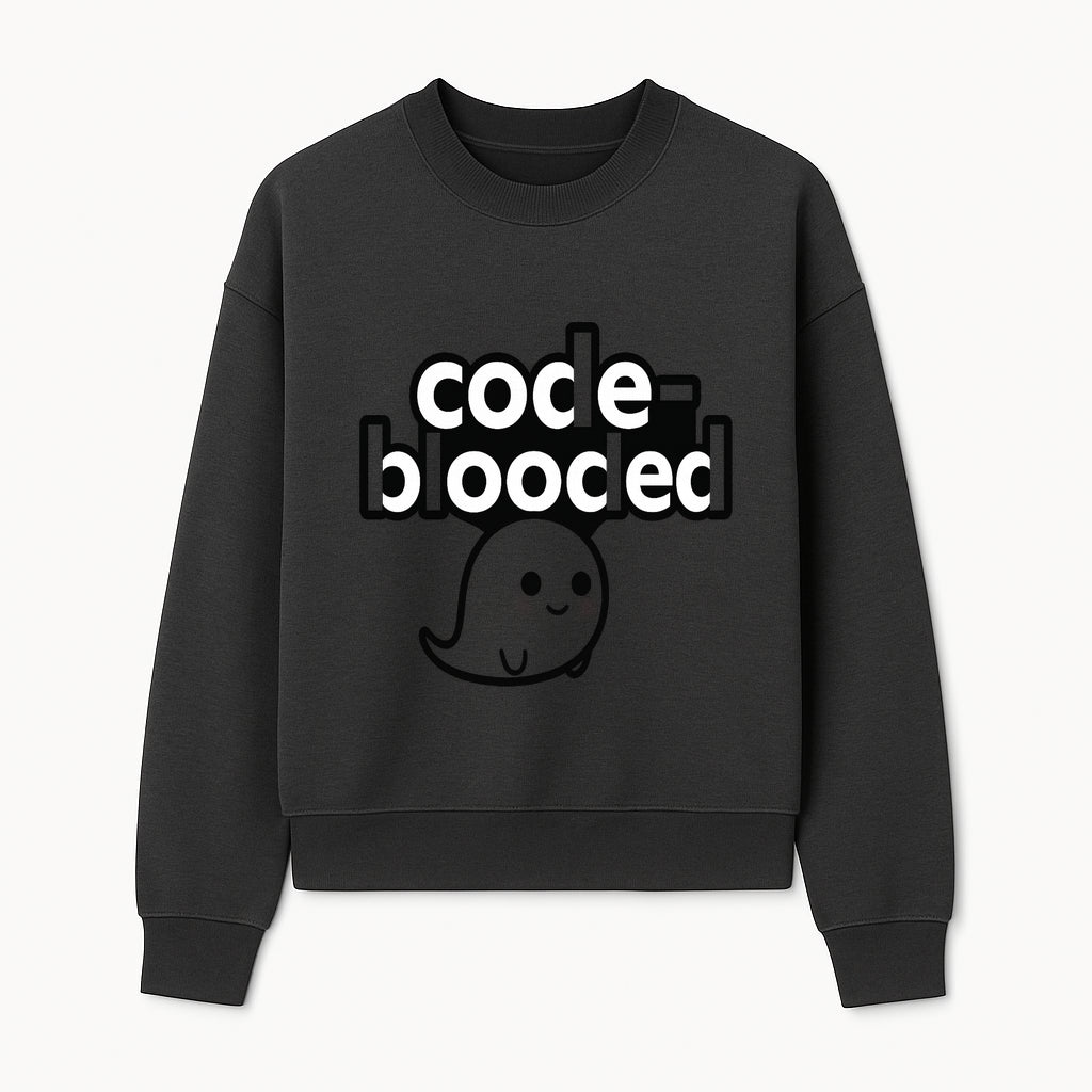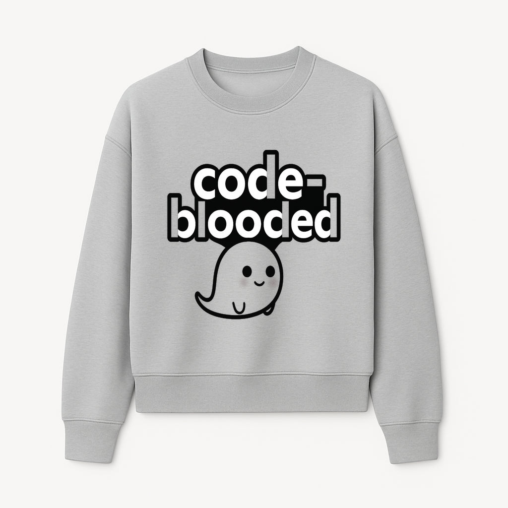 Cute Ghost Code-Blooded Graphic Tee for Programmers and Tech Lovers, Fun Gift for Coders, Halloween or Everyday Wear - Sweatshirt