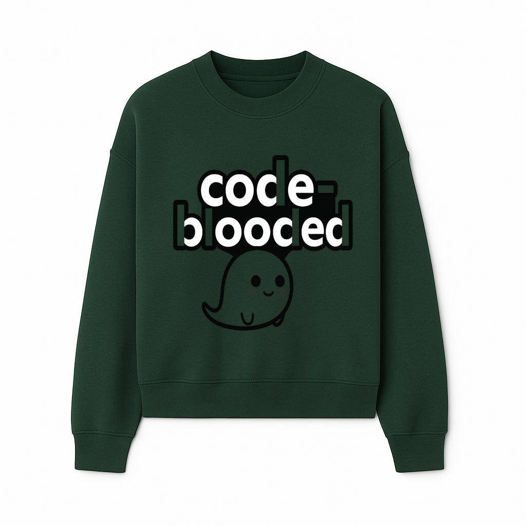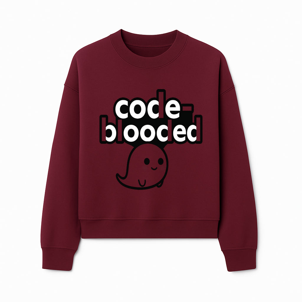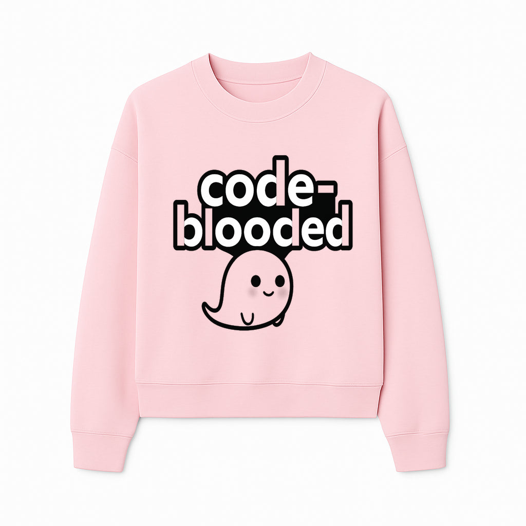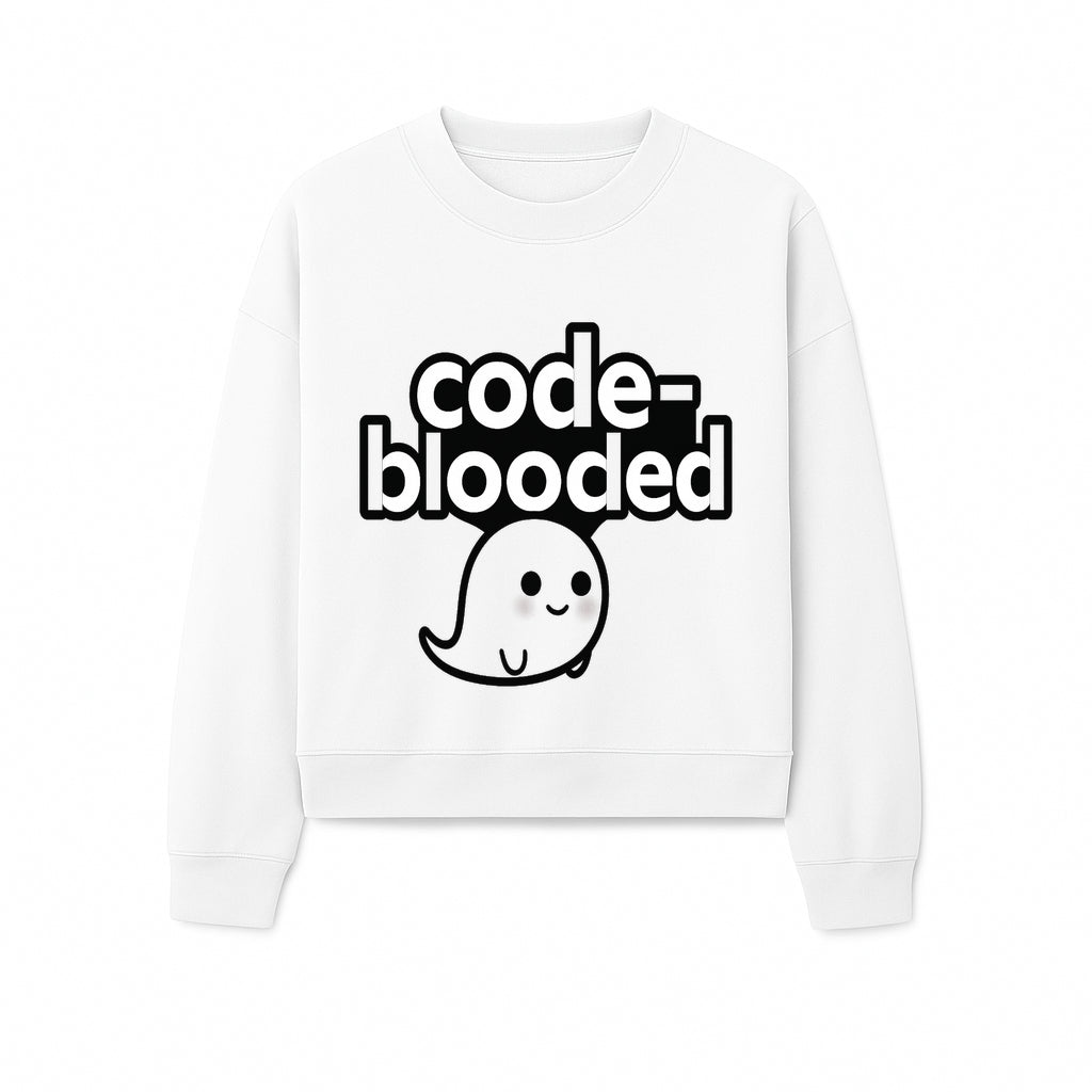 Cute Ghost Code-Blooded Graphic Tee for Programmers and Tech Lovers, Fun Gift for Coders, Halloween or Everyday Wear - Sweatshirt