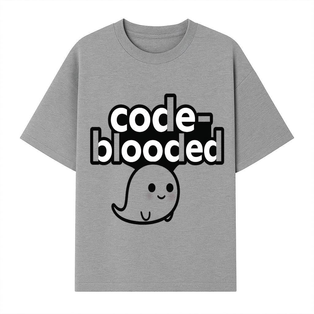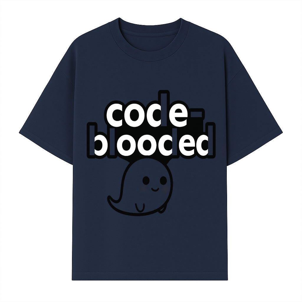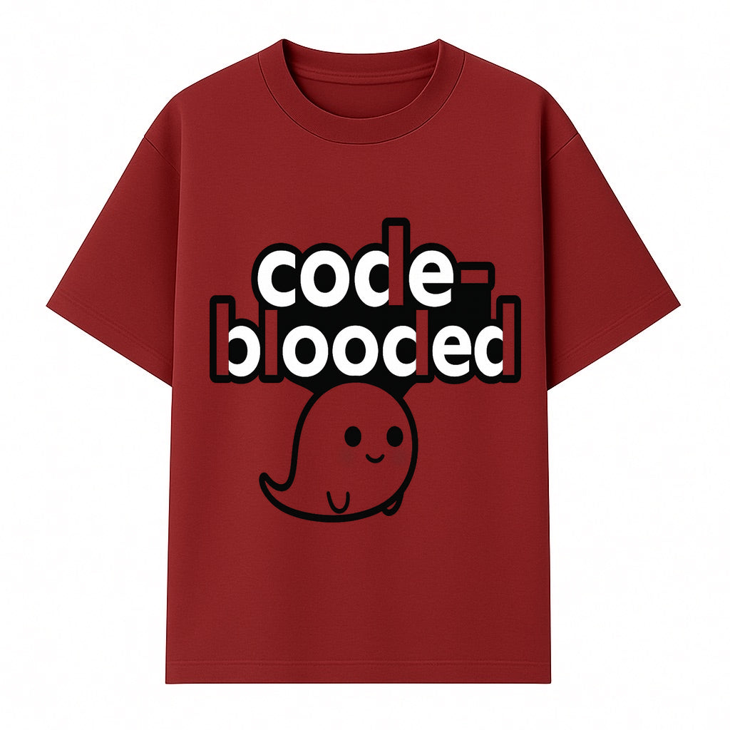Cute Ghost Code-Blooded Graphic Tee for Programmers and Tech Lovers, Fun Gift for Coders, Halloween or Everyday Wear - T-shirt