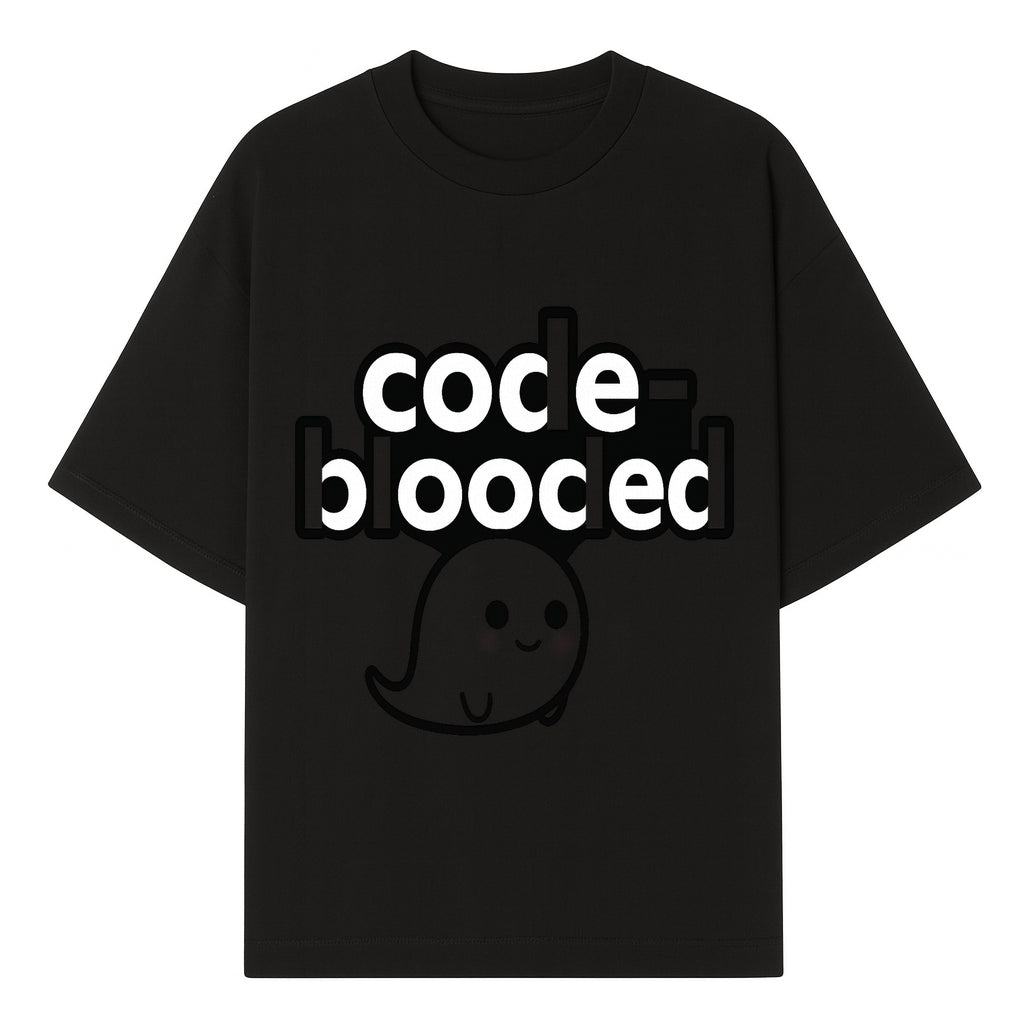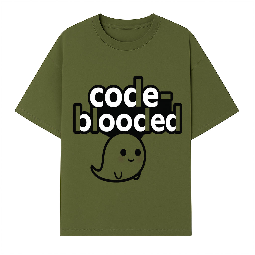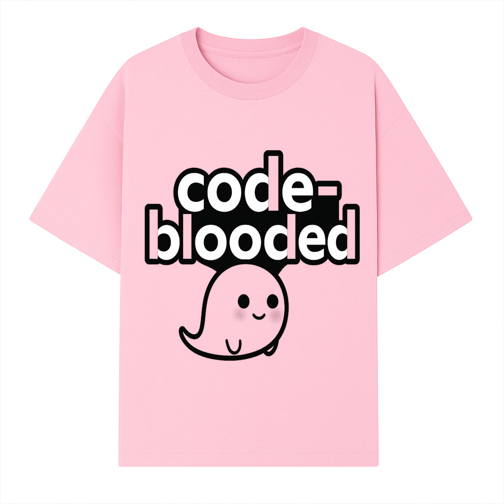 Cute Ghost Code-Blooded Graphic Tee for Programmers and Tech Lovers, Fun Gift for Coders, Halloween or Everyday Wear - T-shirt