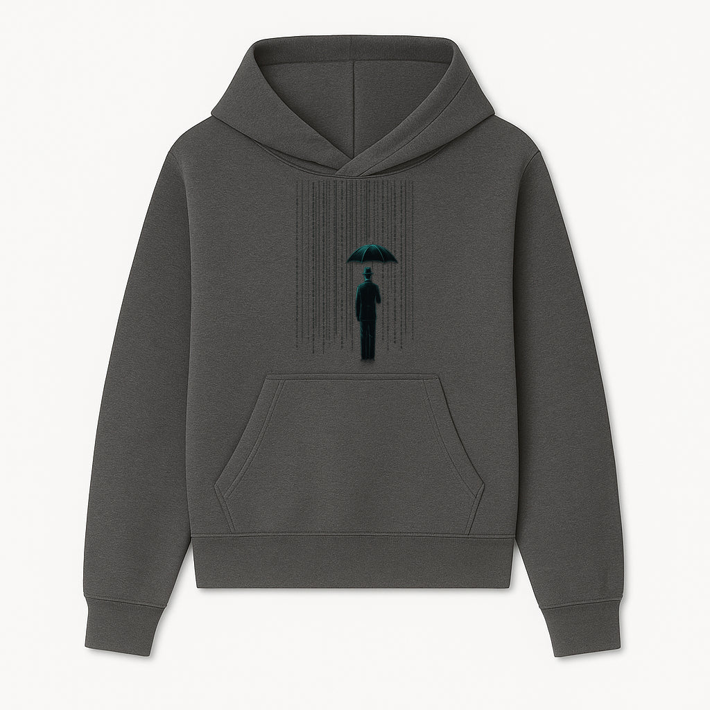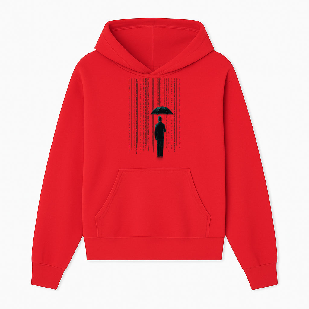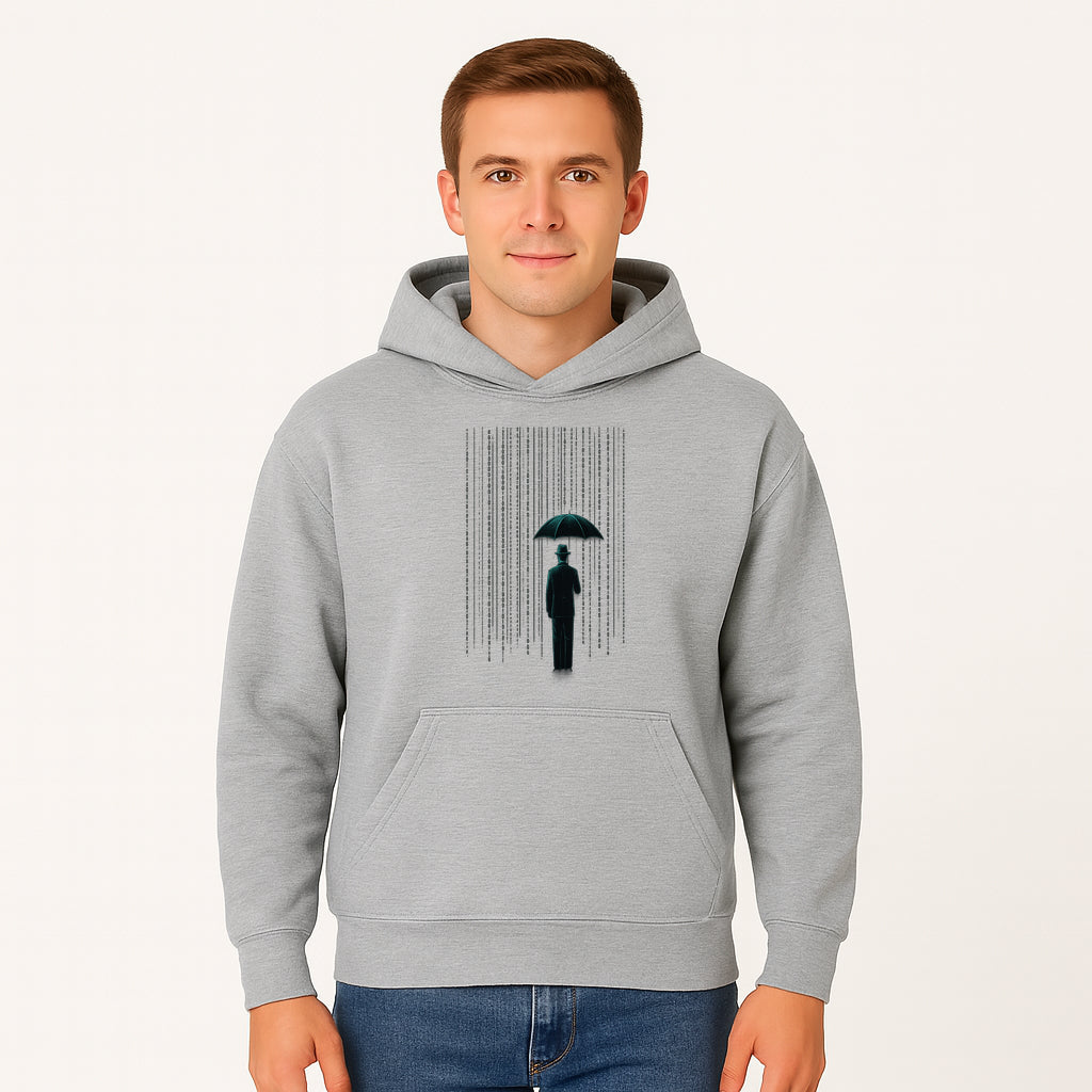 Digital Rain Umbrella Art Print - Retro Sci-Fi Illustrations for Home Decor, Wall Art, and Tech Enthusiasts - Hoodie