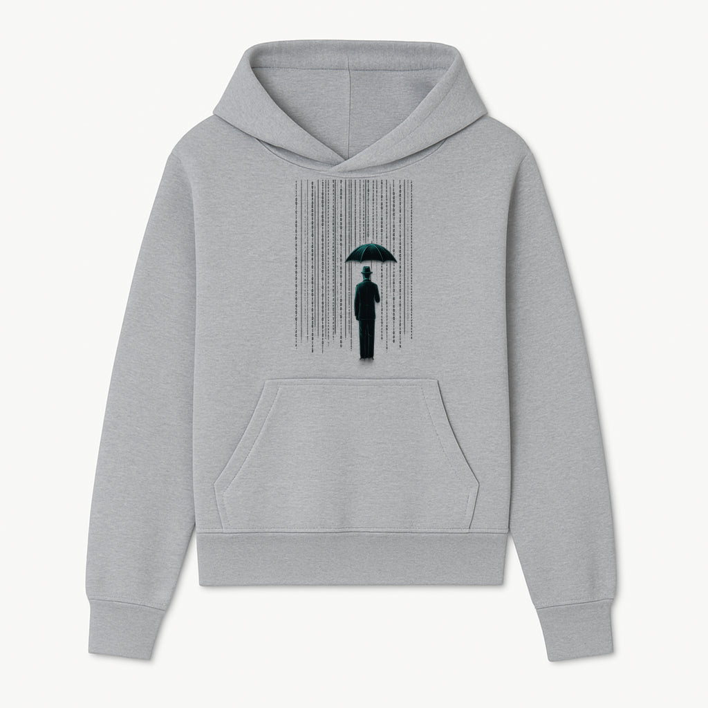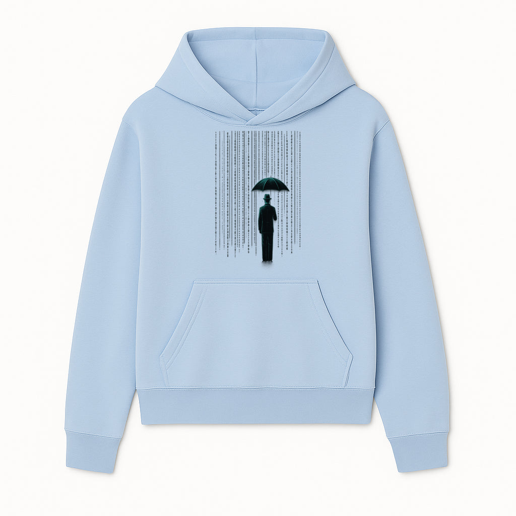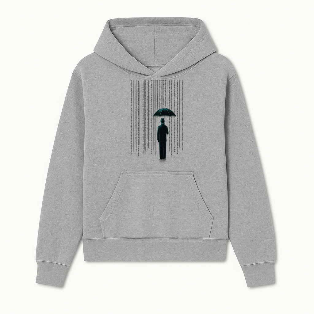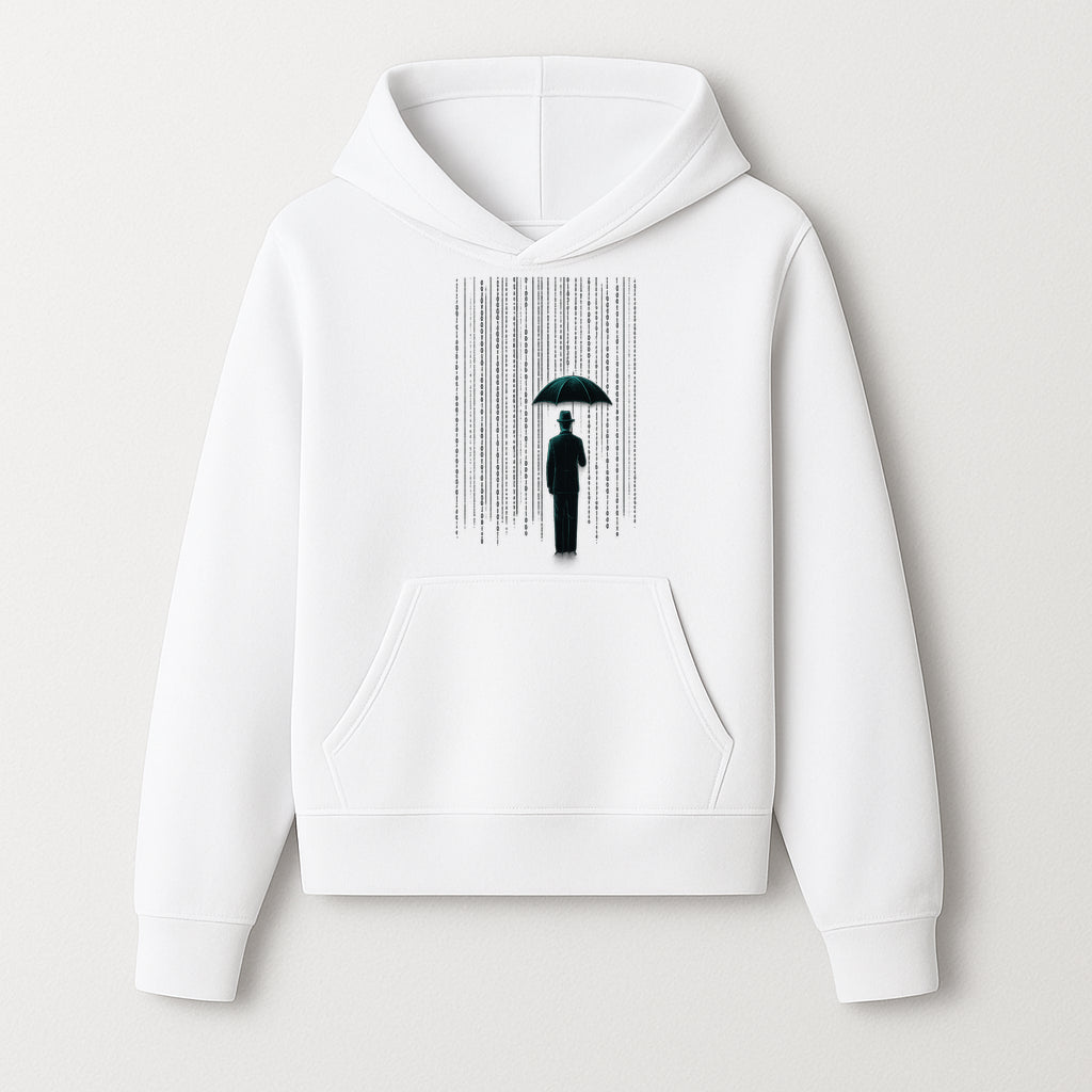 Digital Rain Umbrella Art Print - Retro Sci-Fi Illustrations for Home Decor, Wall Art, and Tech Enthusiasts - Hoodie