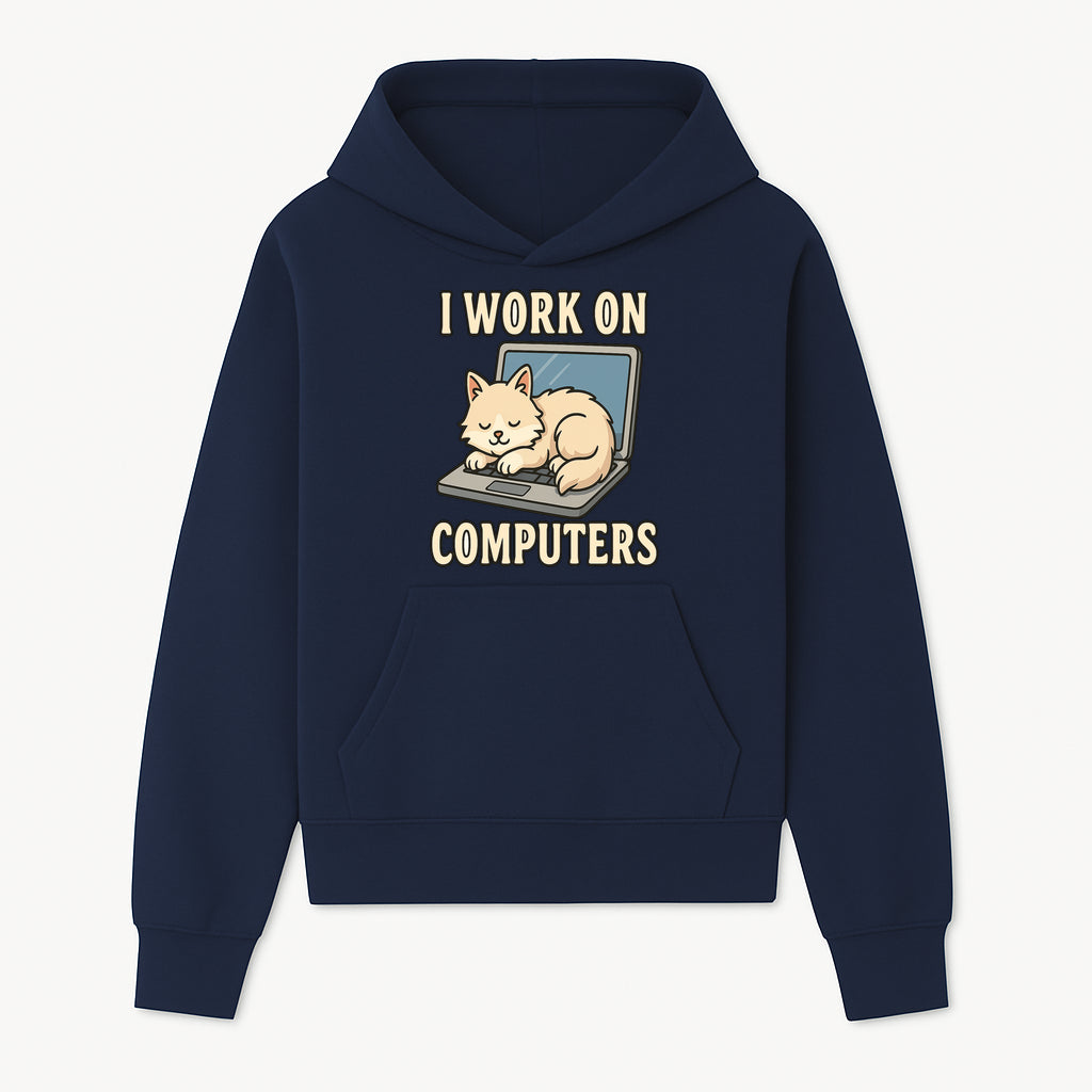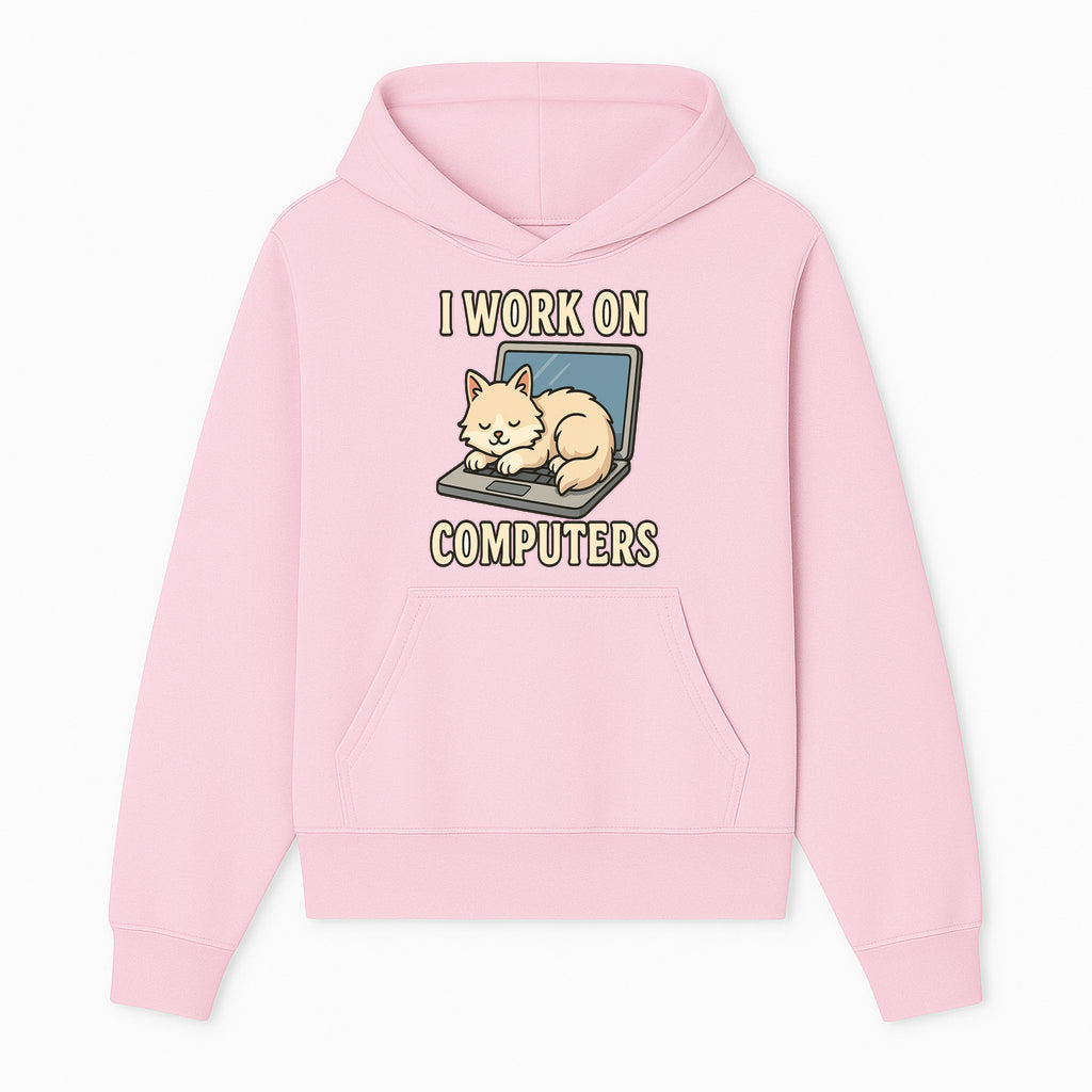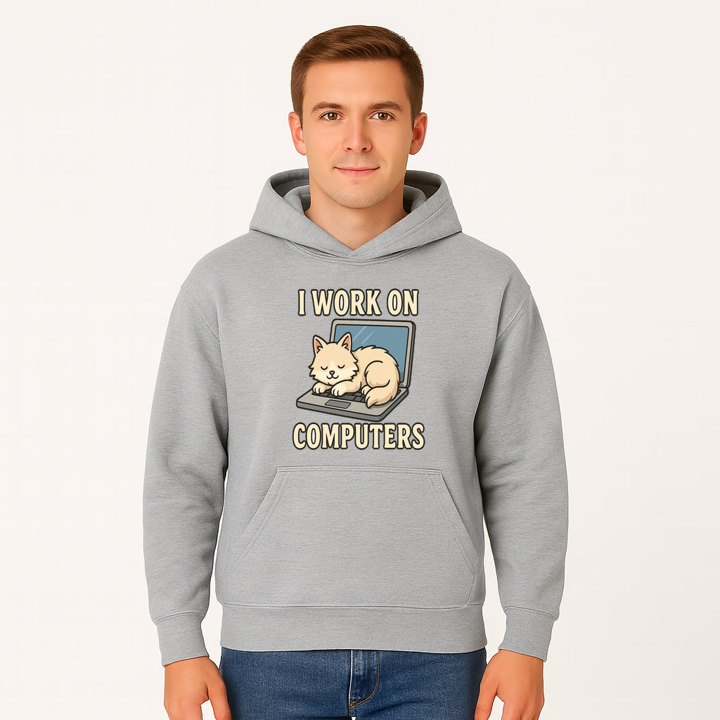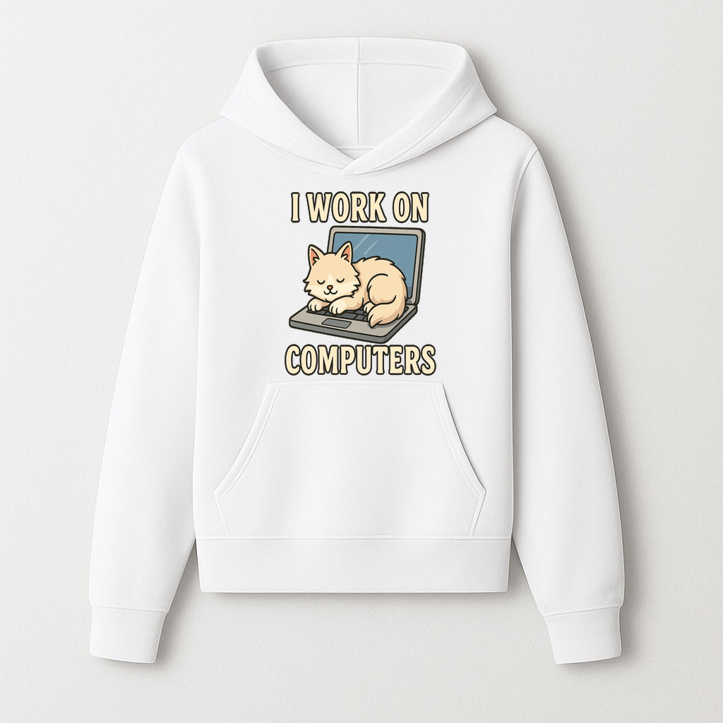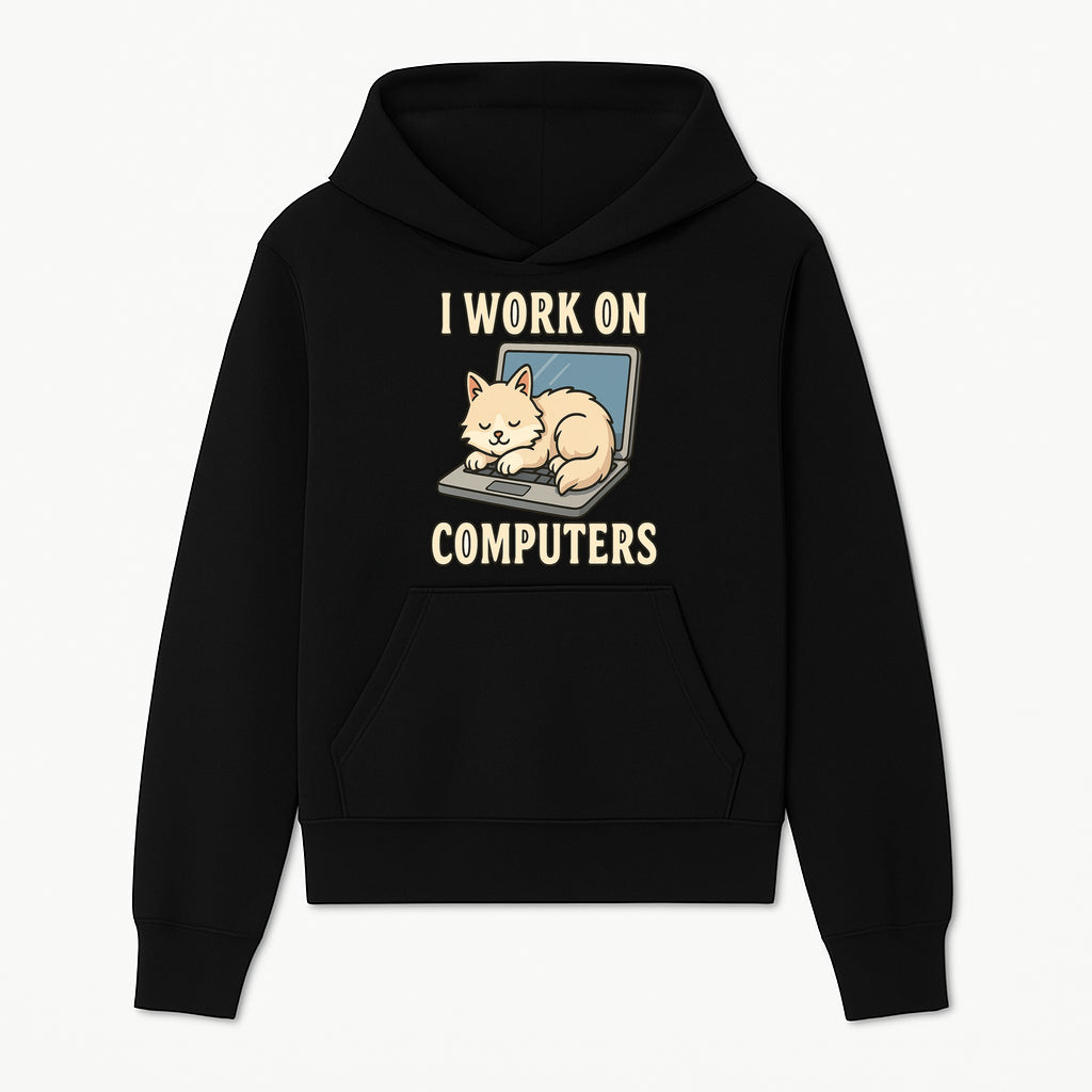 Funny Cat Gift - I Work on Computers Laptop Design - Cute Cat Lover's Work from Home T-Shirt or Mug - Hoodie