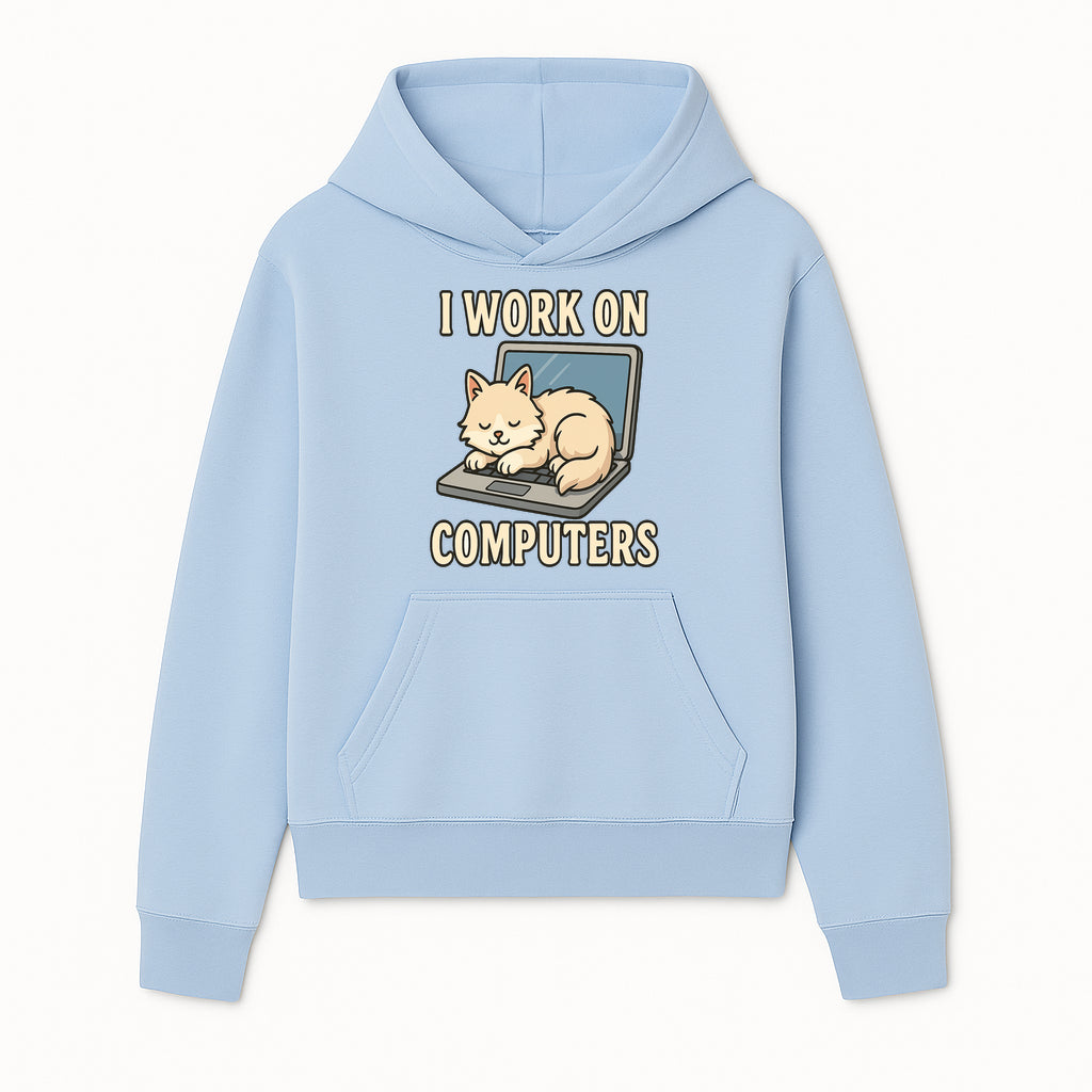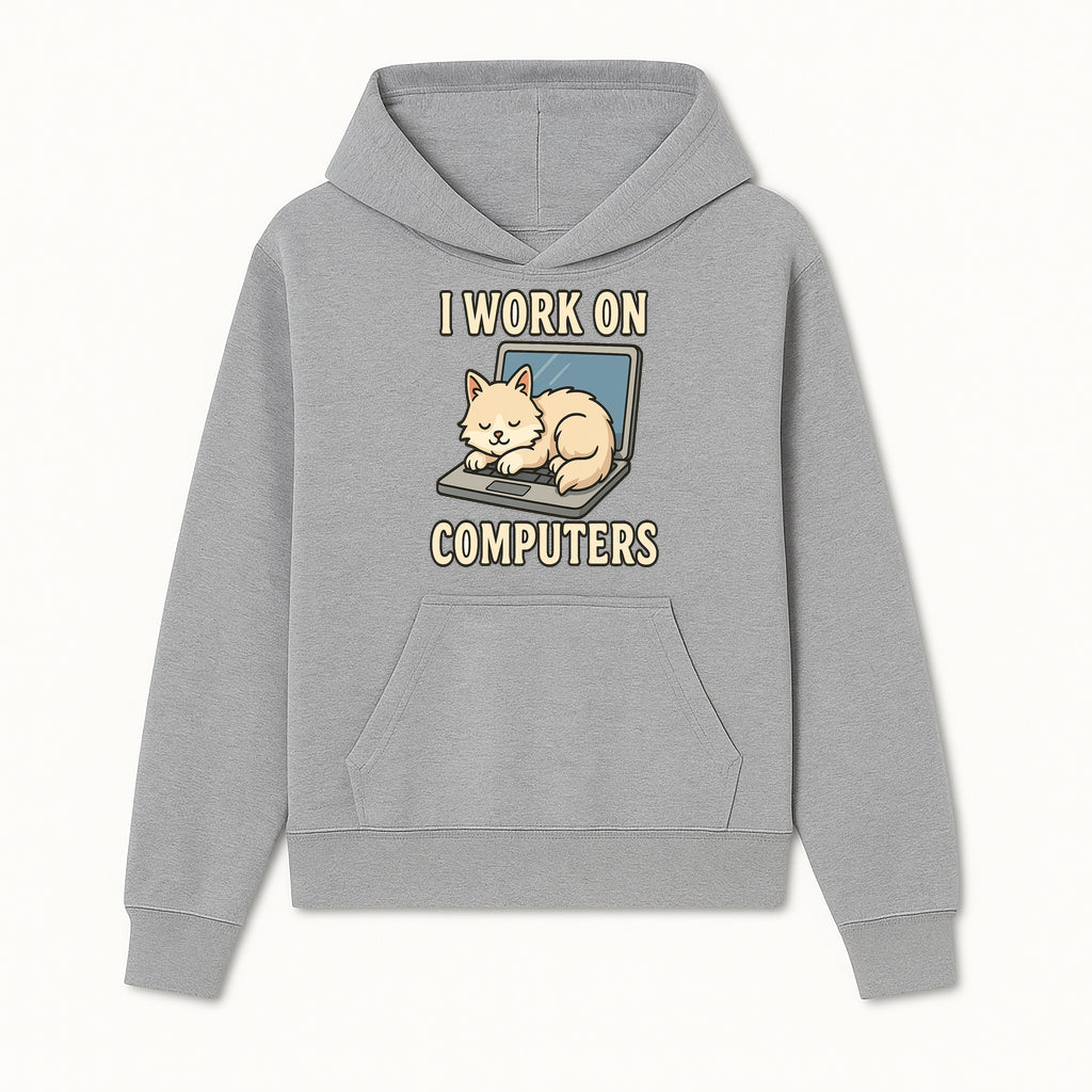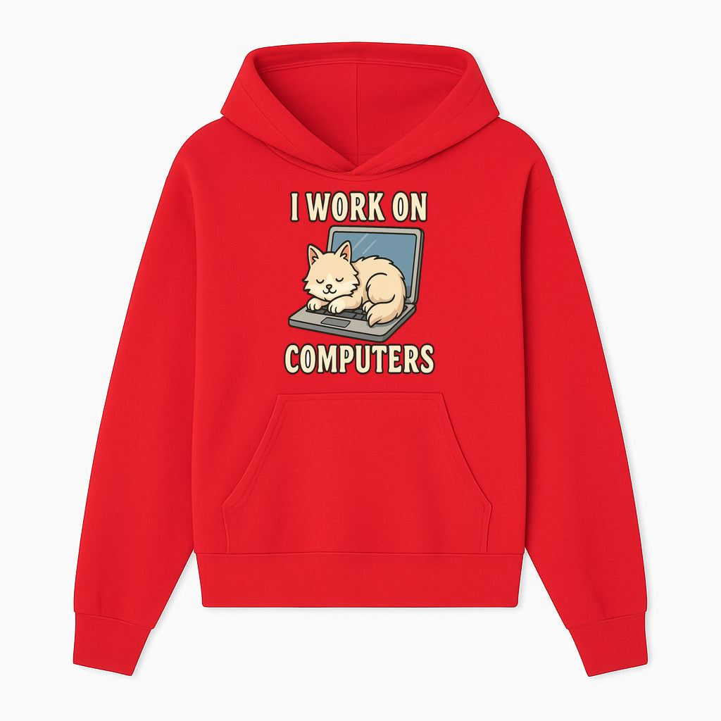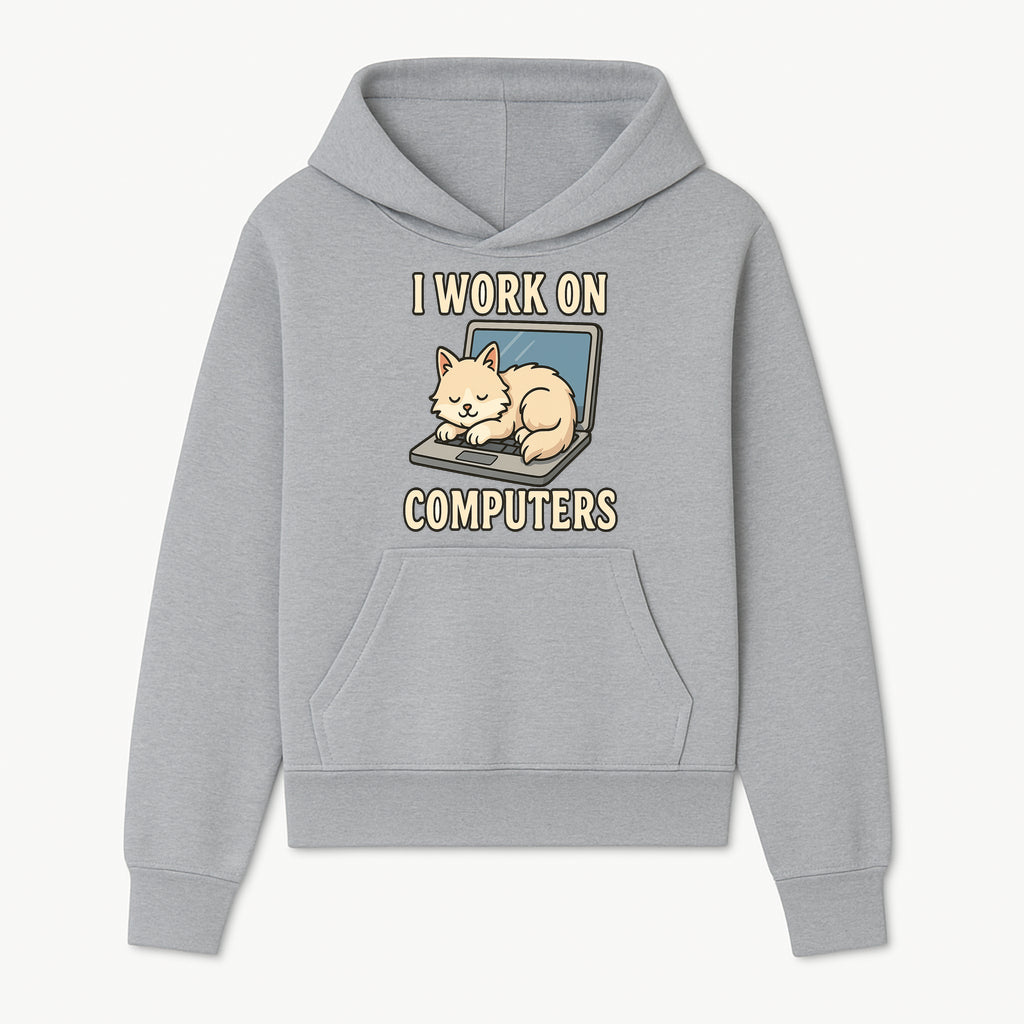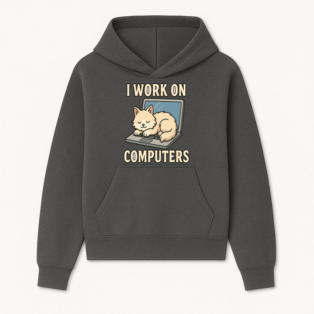 Funny Cat Gift - I Work on Computers Laptop Design - Cute Cat Lover's Work from Home T-Shirt or Mug - Hoodie