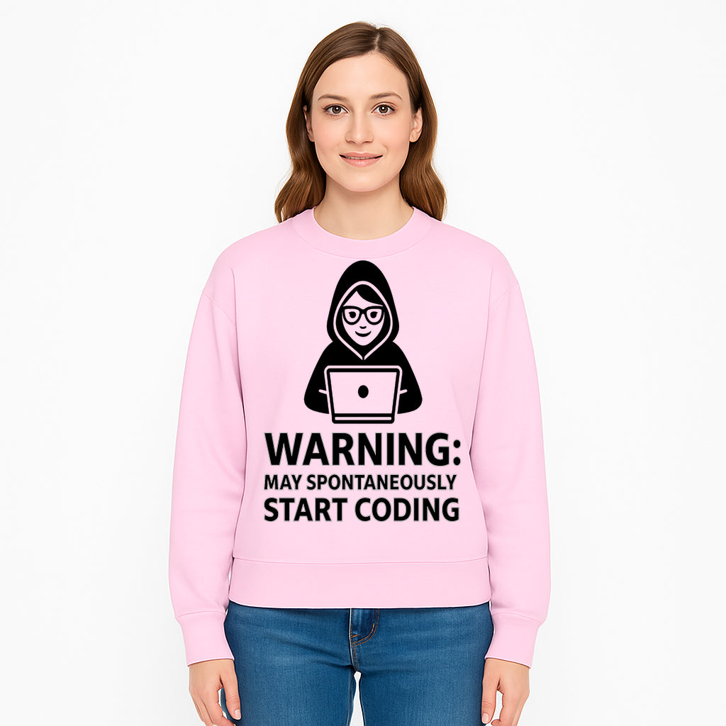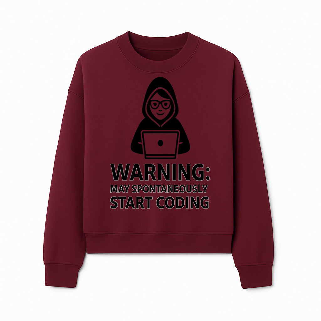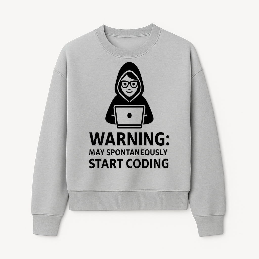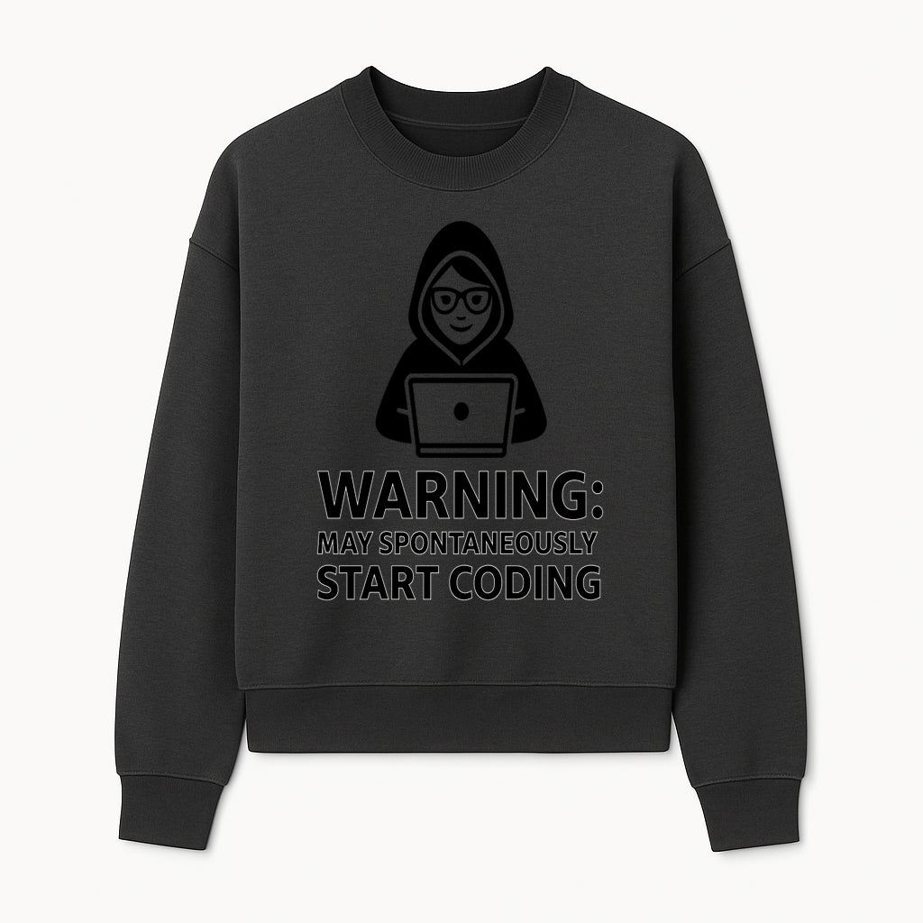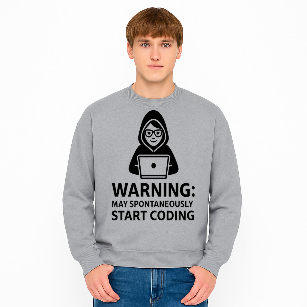 Funny Coding Warning Sign - MAY SPONTANEOUSLY START CODING - Perfect Gift for Programmers, Developers, and Tech Lovers. - Sweatshirt