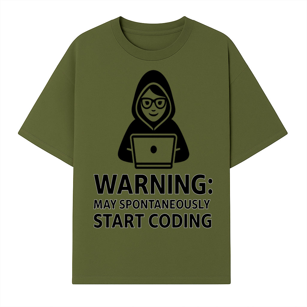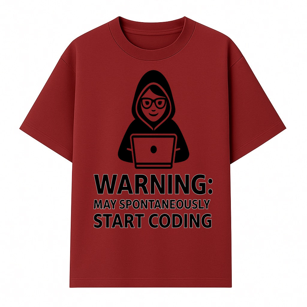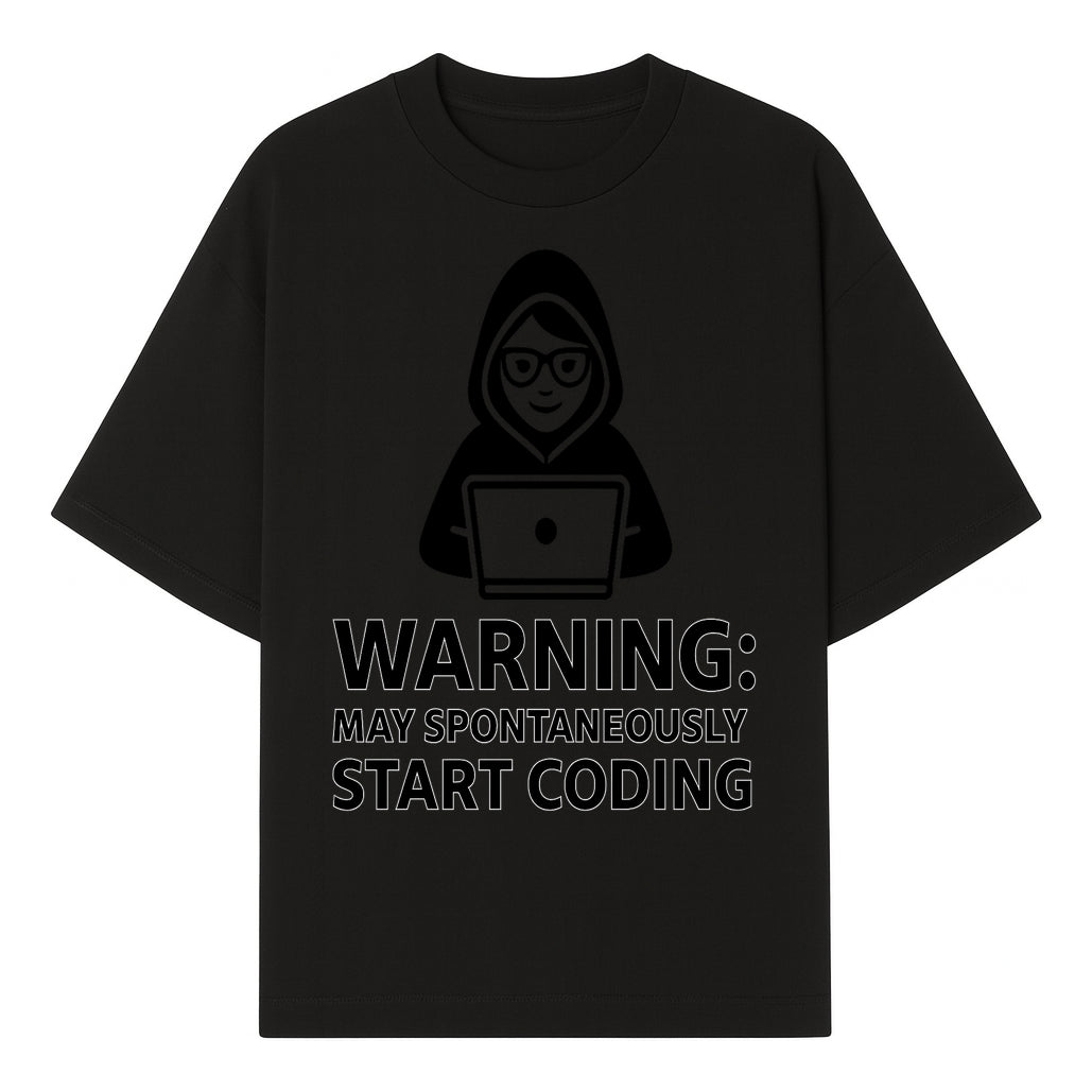 Funny Coding Warning Sign - MAY SPONTANEOUSLY START CODING - Perfect Gift for Programmers, Developers, and Tech Lovers. - T-shirt
