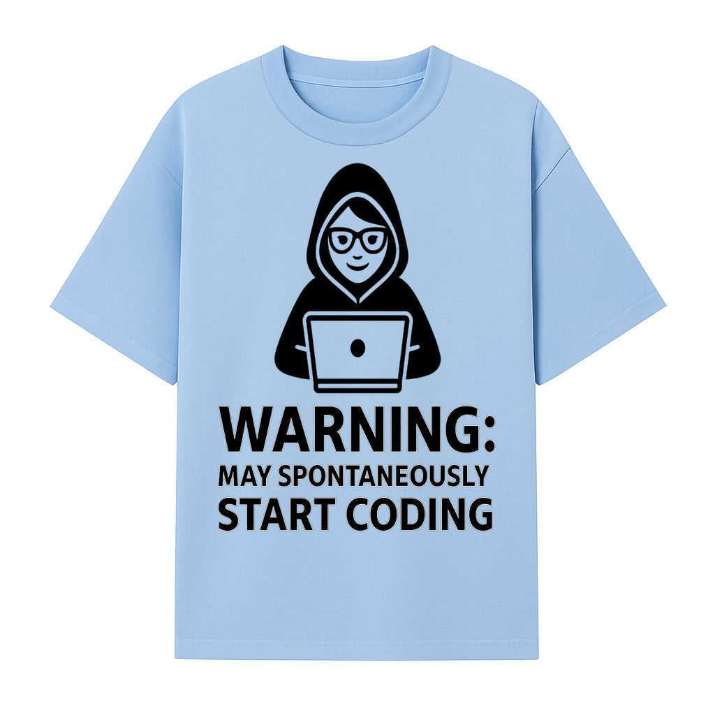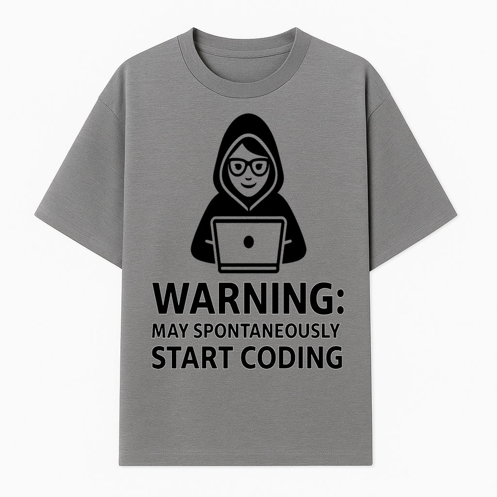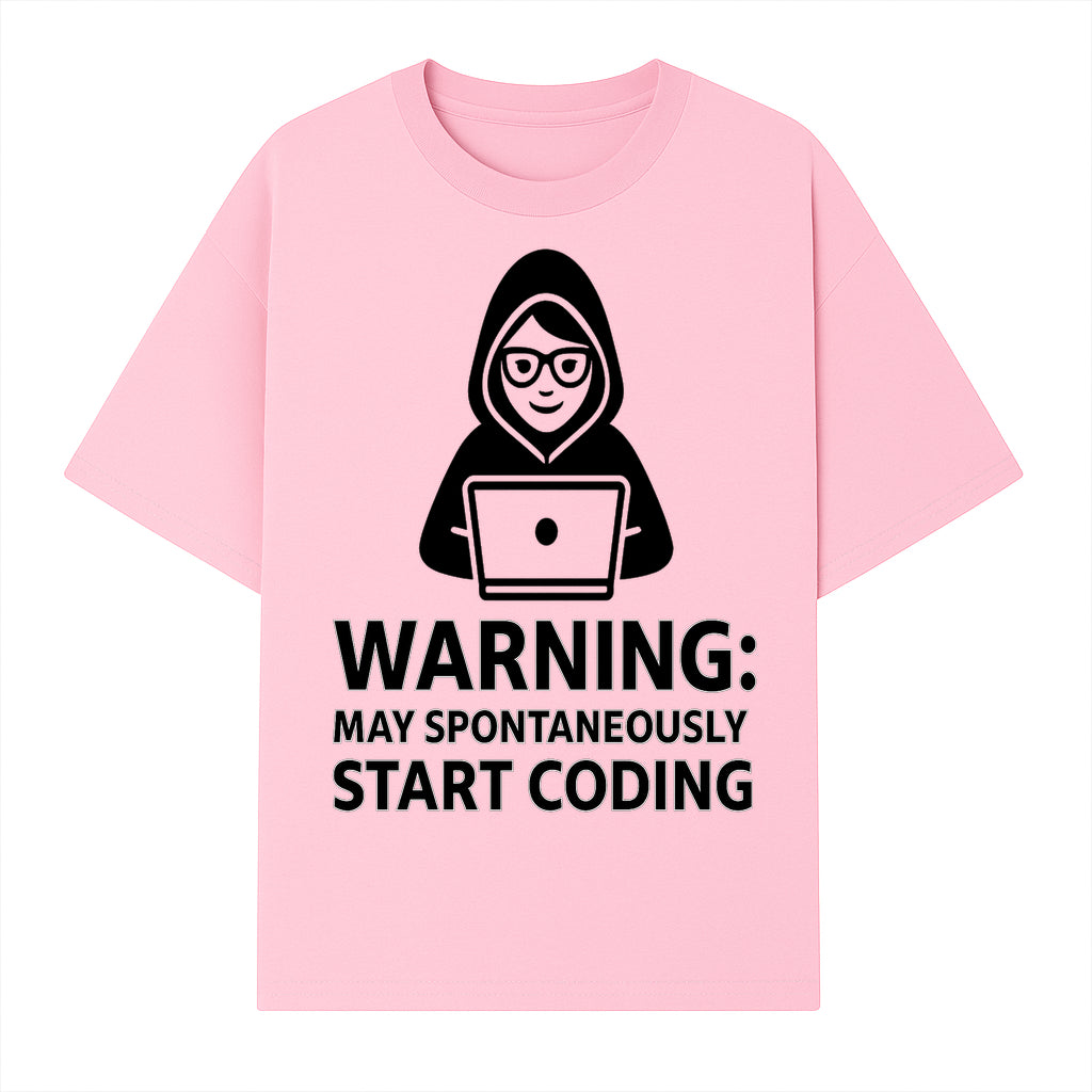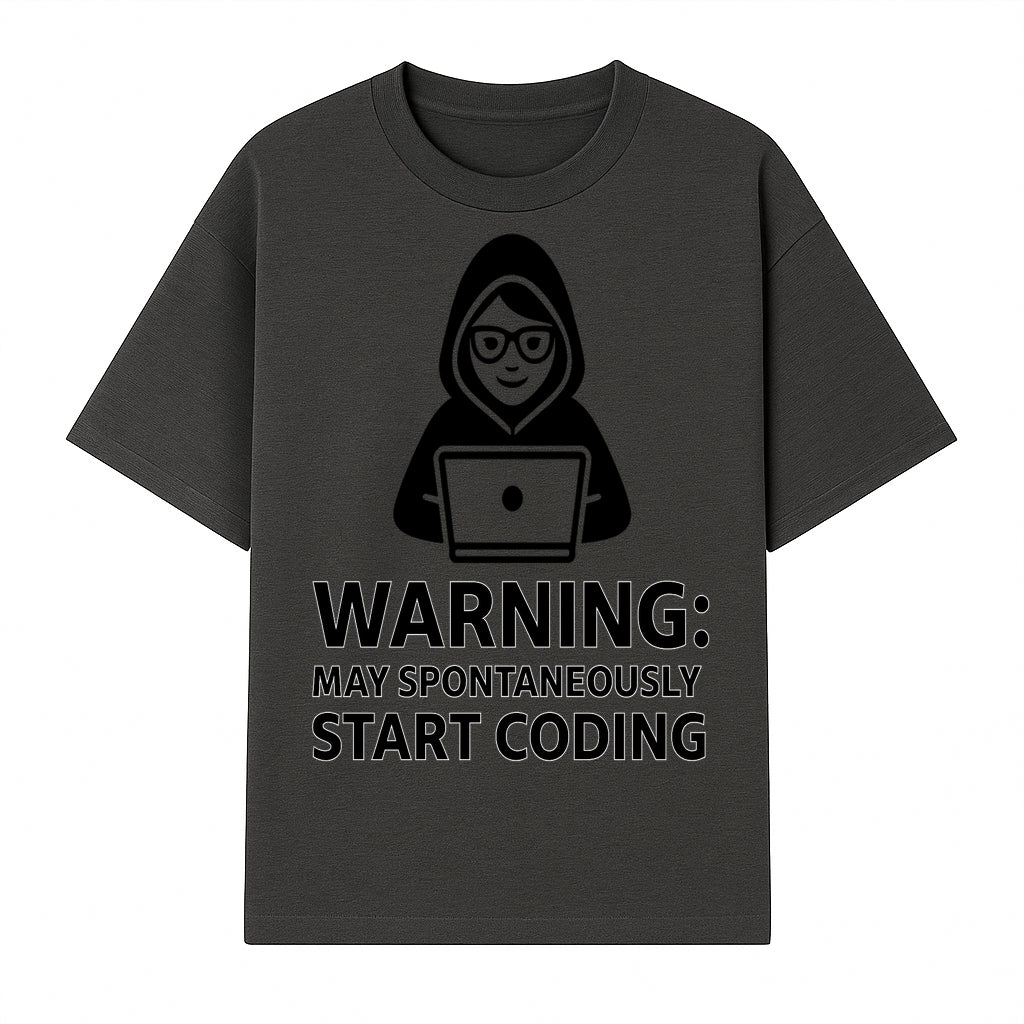 Funny Coding Warning Sign - MAY SPONTANEOUSLY START CODING - Perfect Gift for Programmers, Developers, and Tech Lovers. - T-shirt