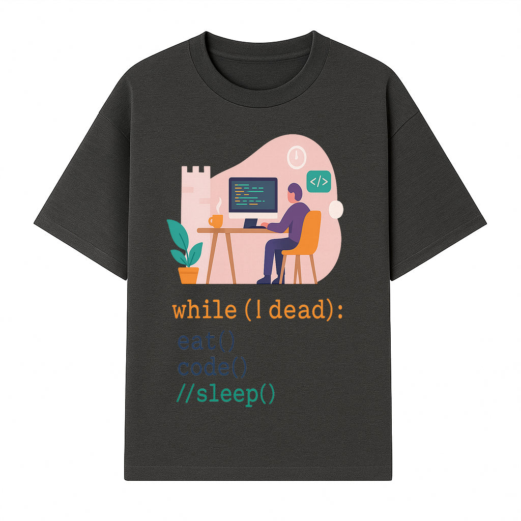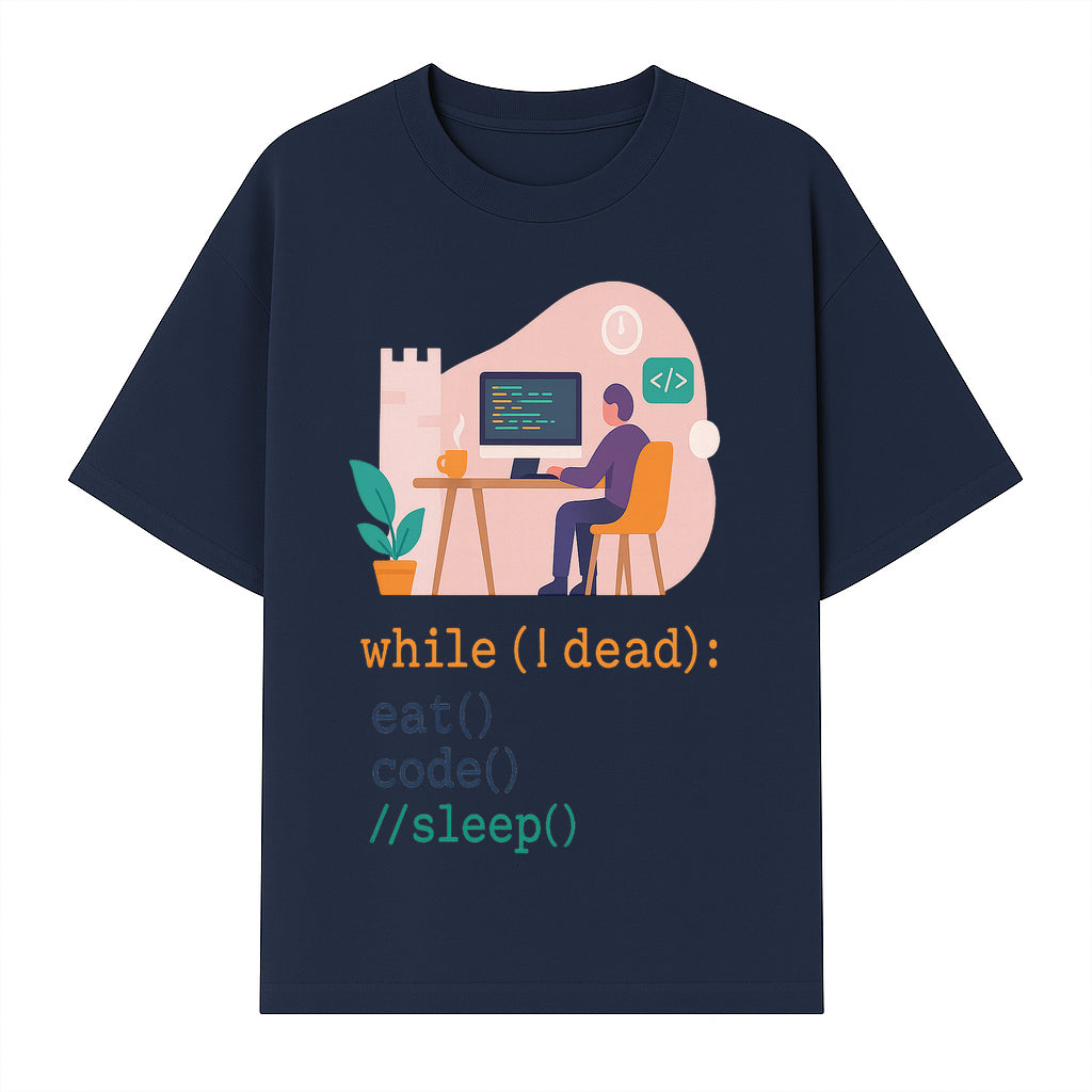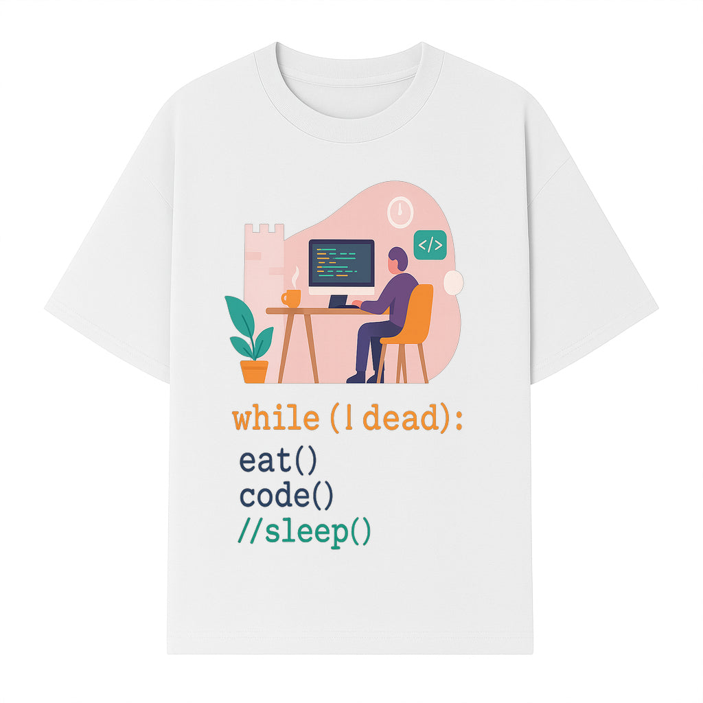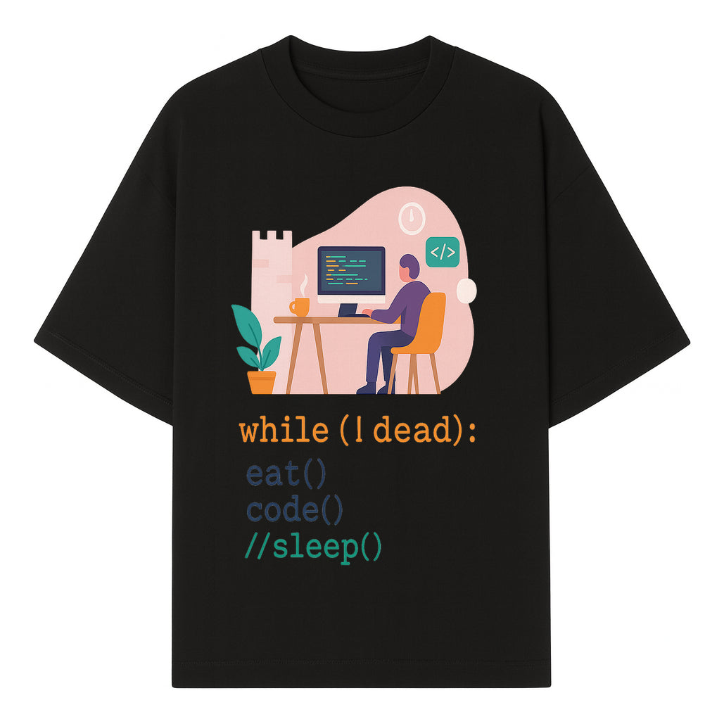 Funny Programmer Wall Art - While I Dead: Eat, Code, Sleep - Tech Decor for Developers, Coding Humor Print - T-shirt