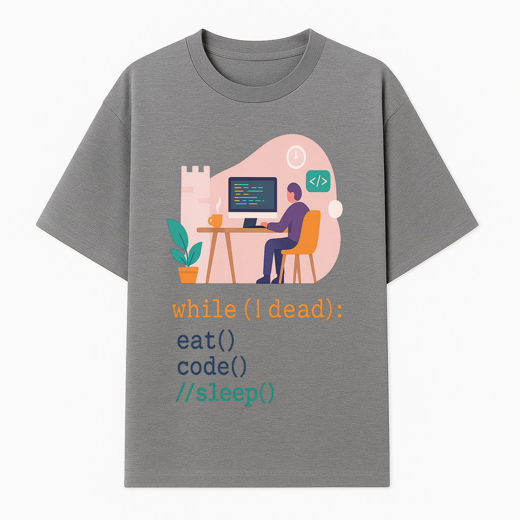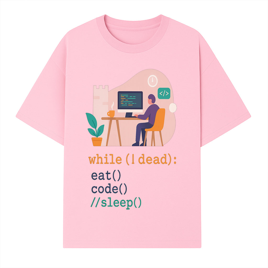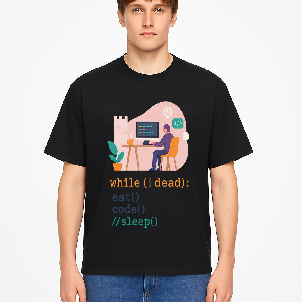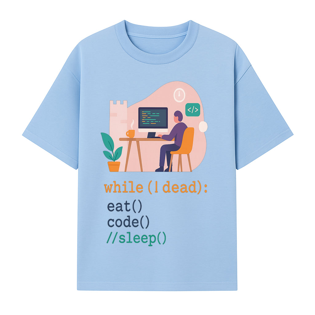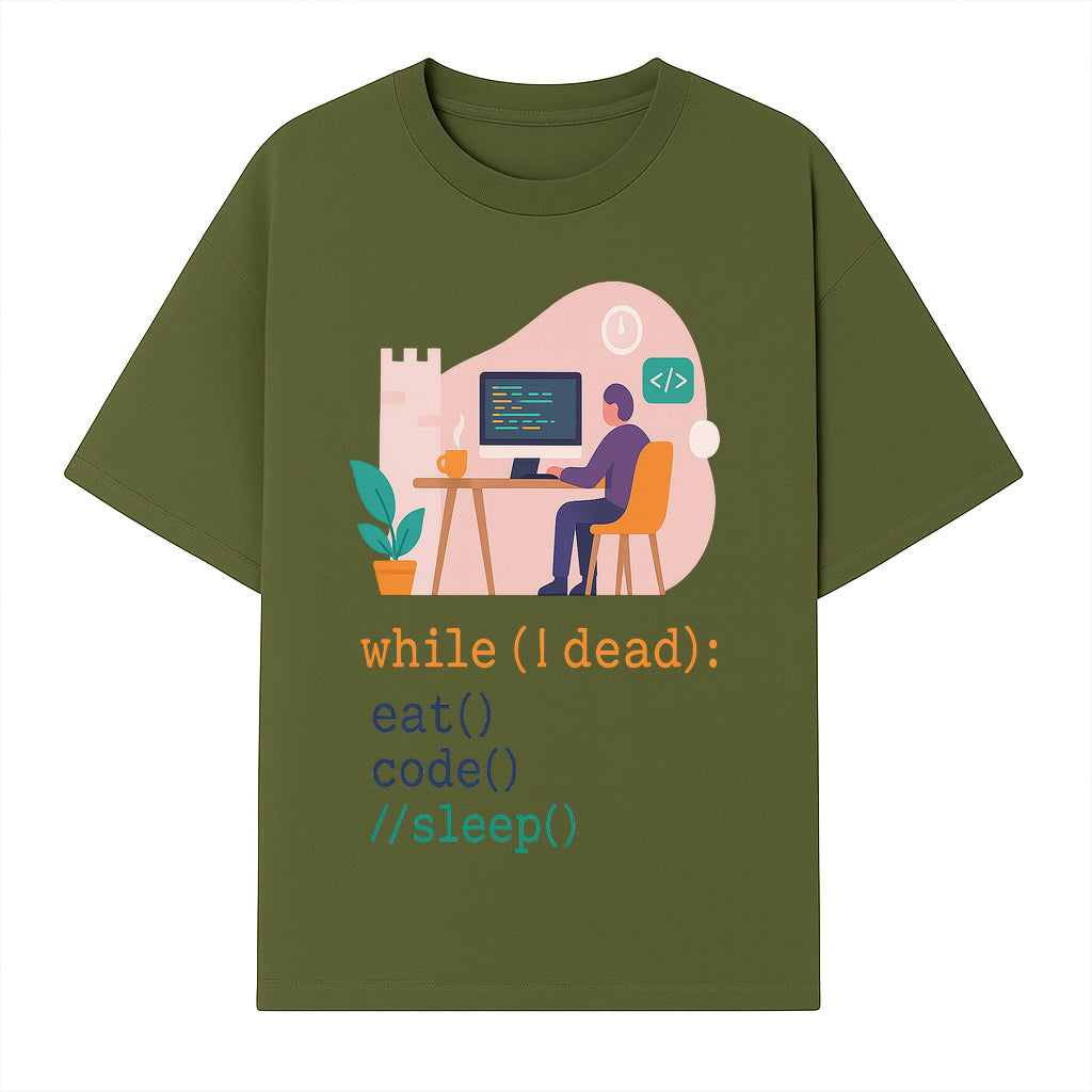 Funny Programmer Wall Art - While I Dead: Eat, Code, Sleep - Tech Decor for Developers, Coding Humor Print - T-shirt
