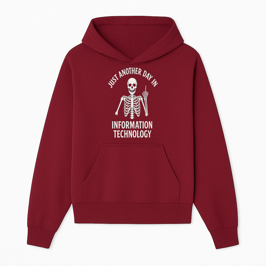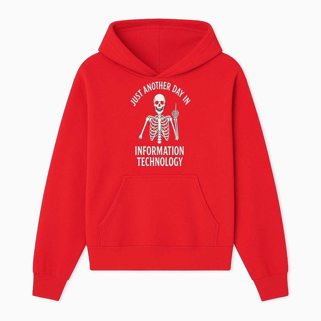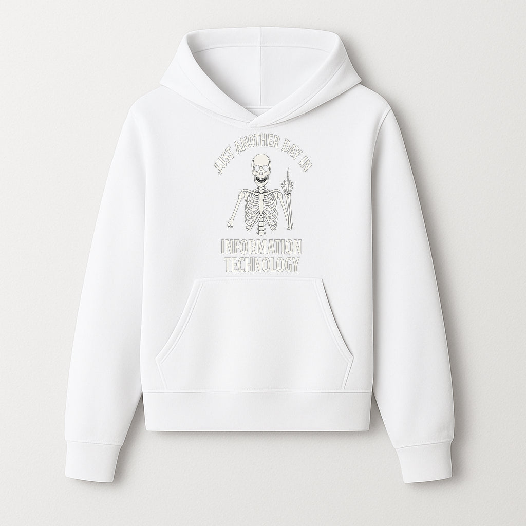 Funny Skeleton IT Shirt - Just Another Day in Information Technology Graphic Tee for Tech Lovers, Programmers, and Geeks - Hoodie
