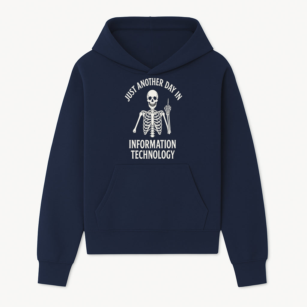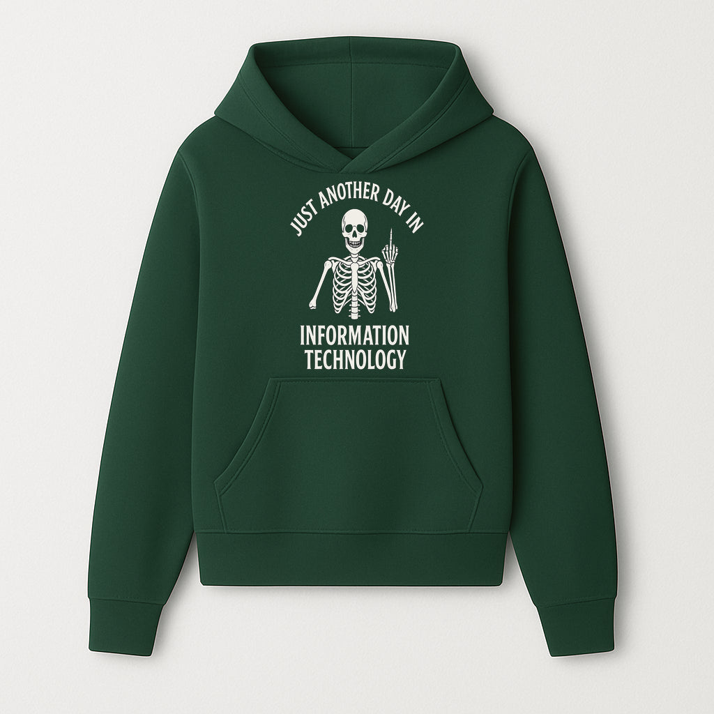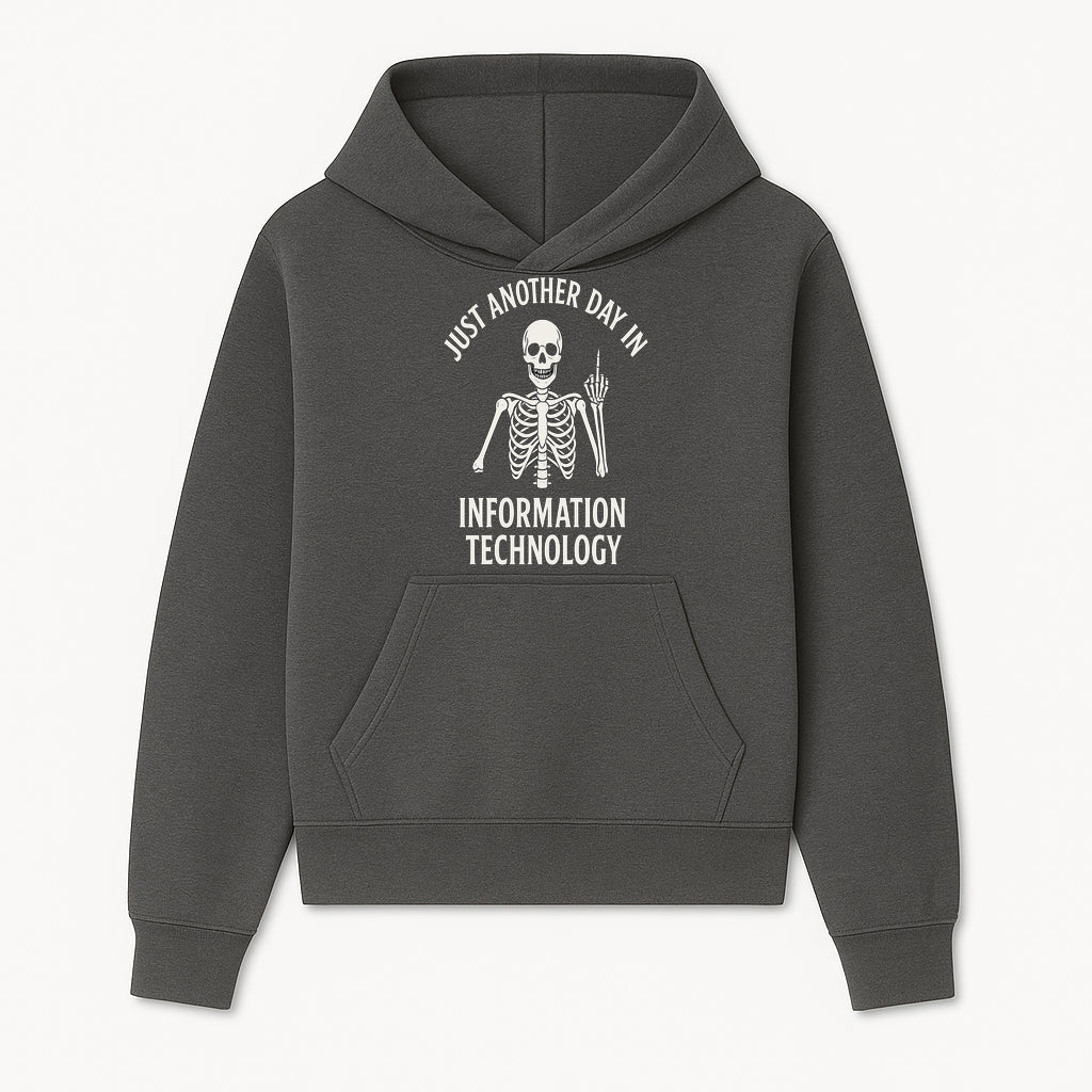 Funny Skeleton IT Shirt - Just Another Day in Information Technology Graphic Tee for Tech Lovers, Programmers, and Geeks - Hoodie