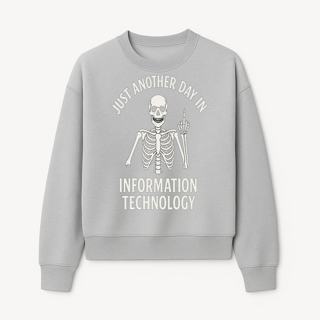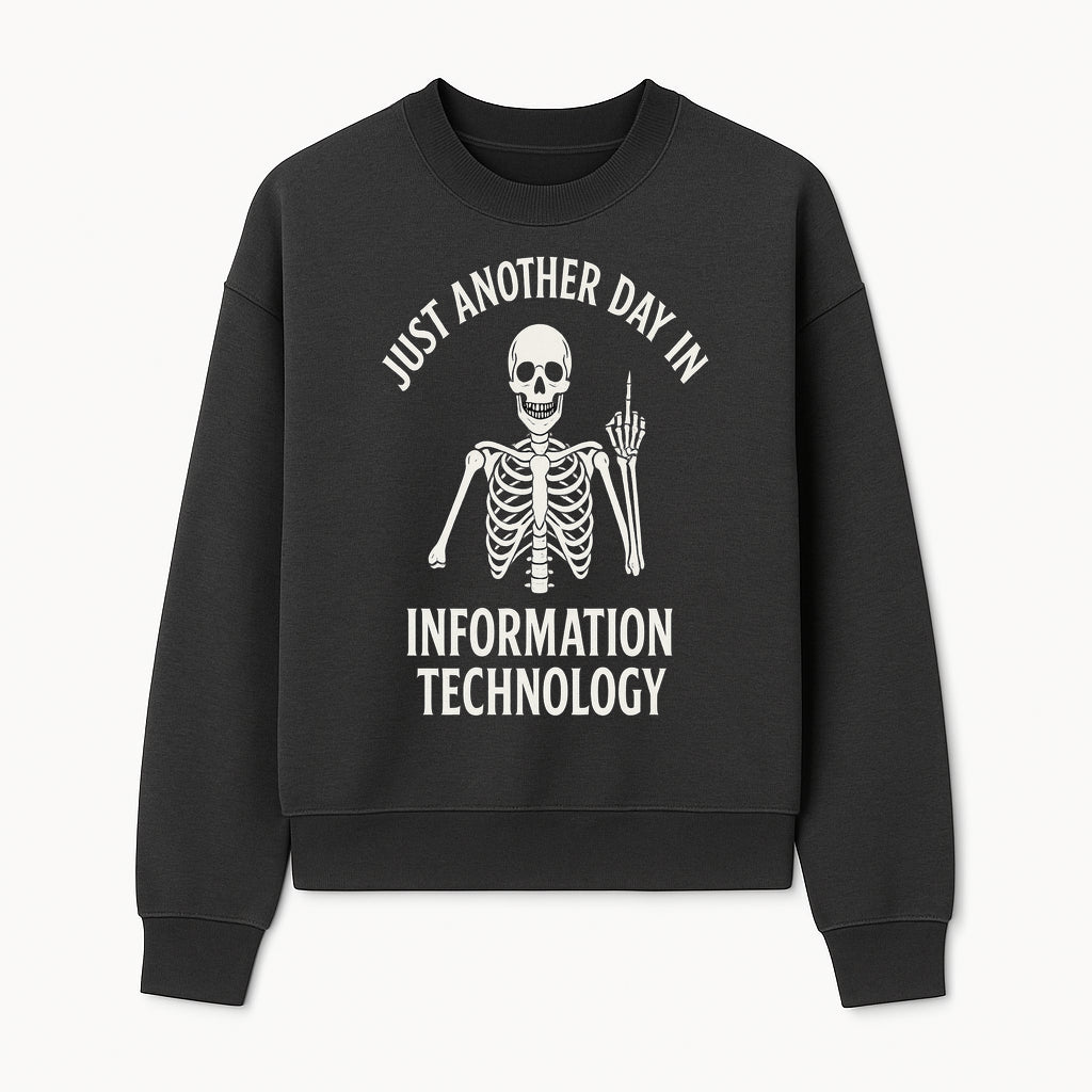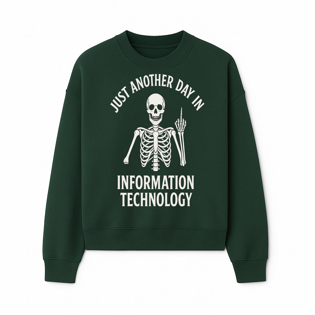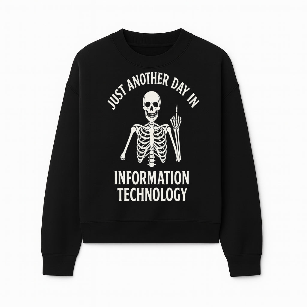 Funny Skeleton IT Shirt - Just Another Day in Information Technology Graphic Tee for Tech Lovers, Programmers, and Geeks - Sweatshirt