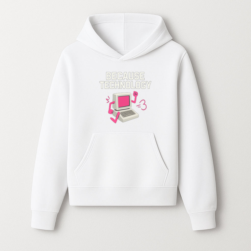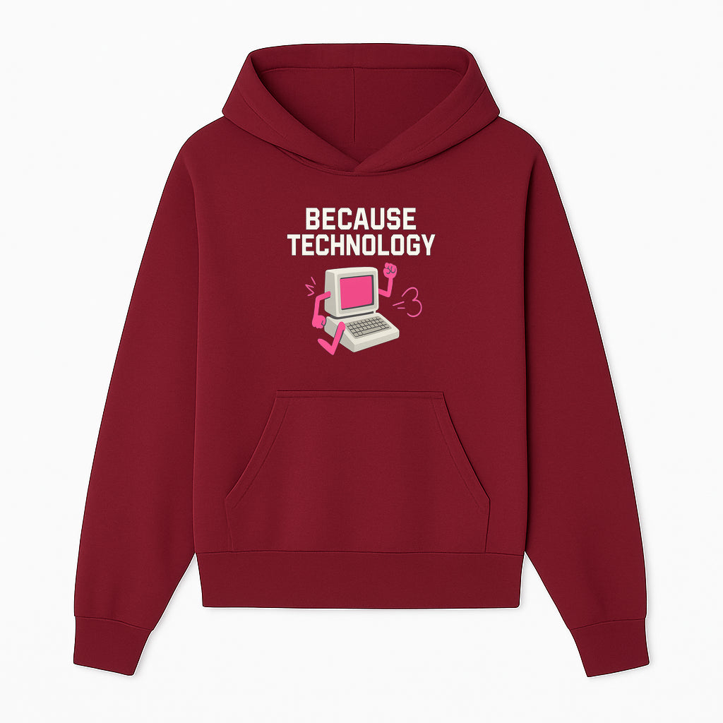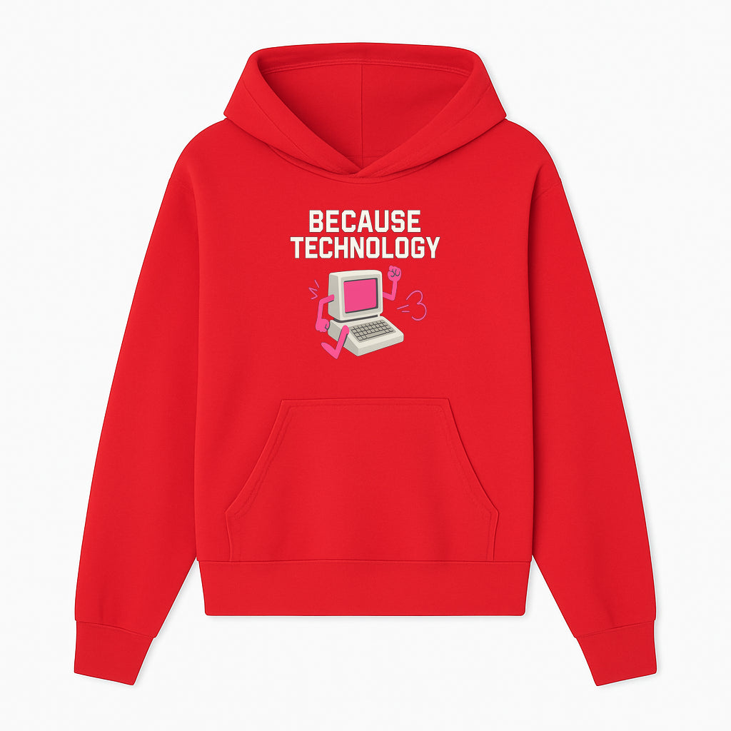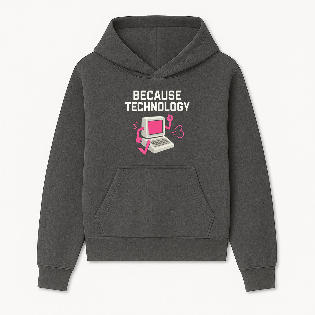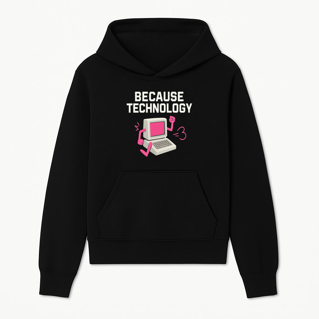 Funny Tech Graphic Tee - 'Because Technology' Retro Computer Design Shirt for Tech Lovers and Gamers - Hoodie
