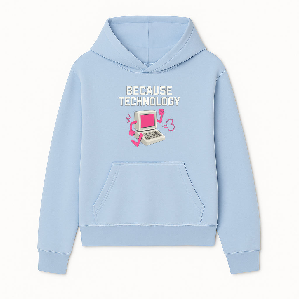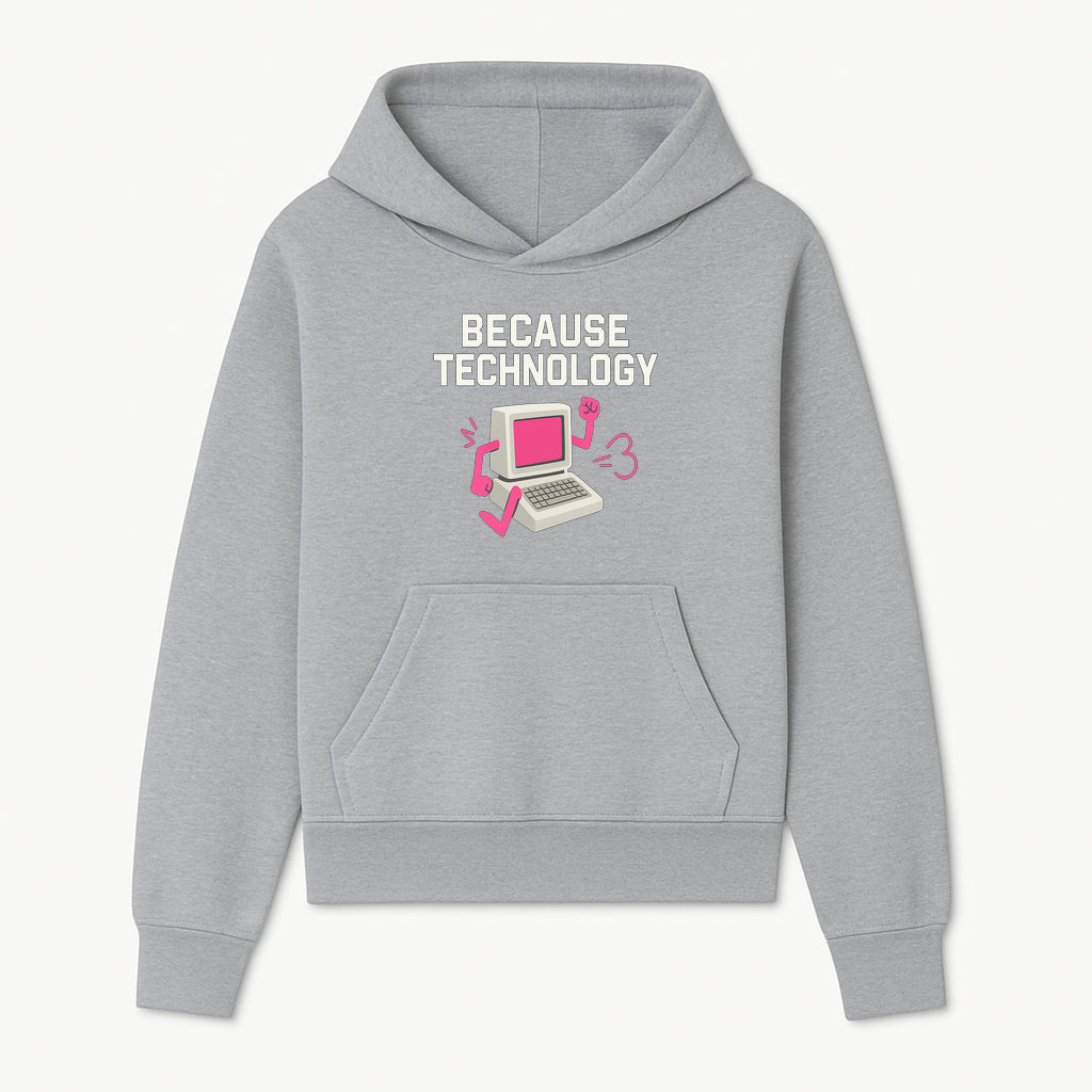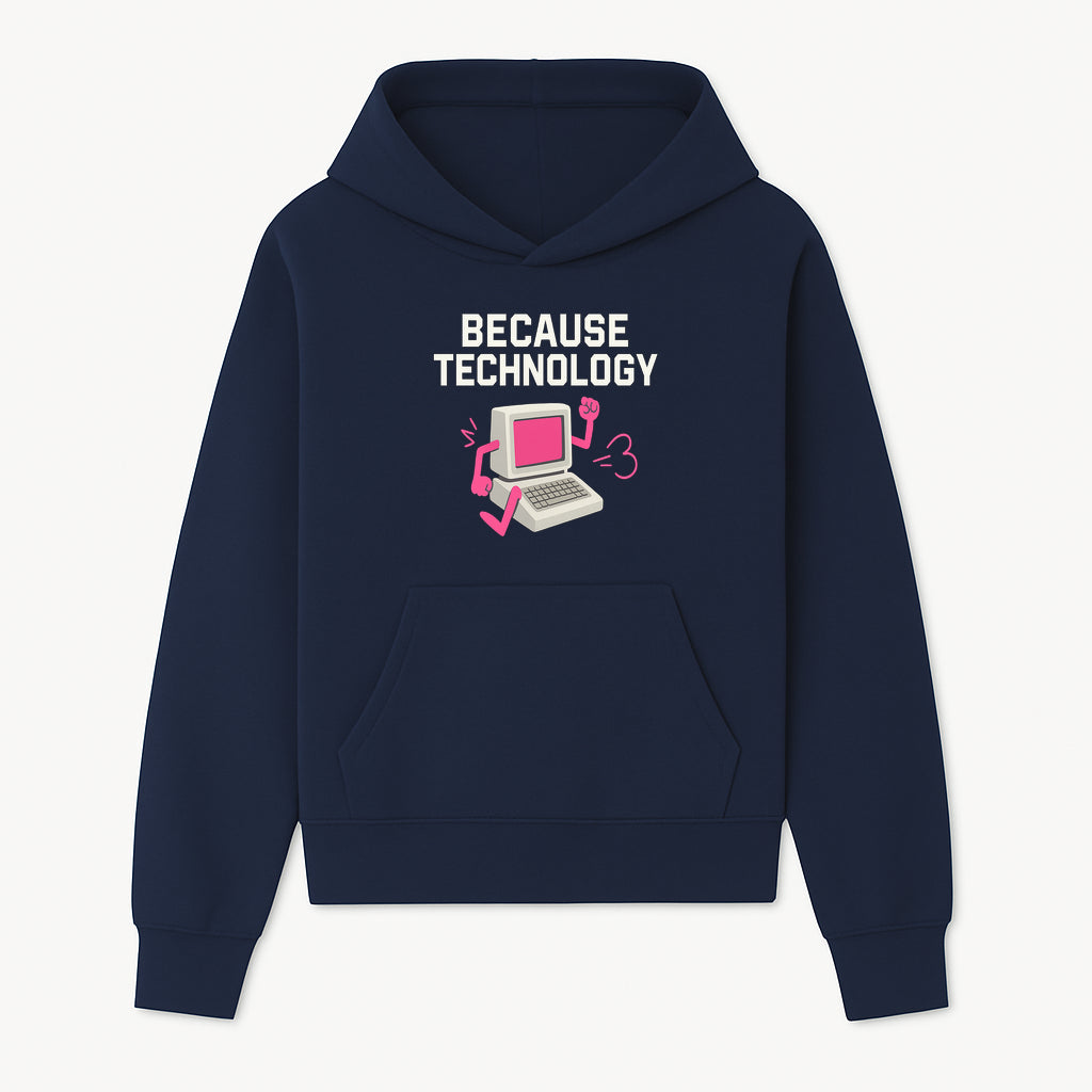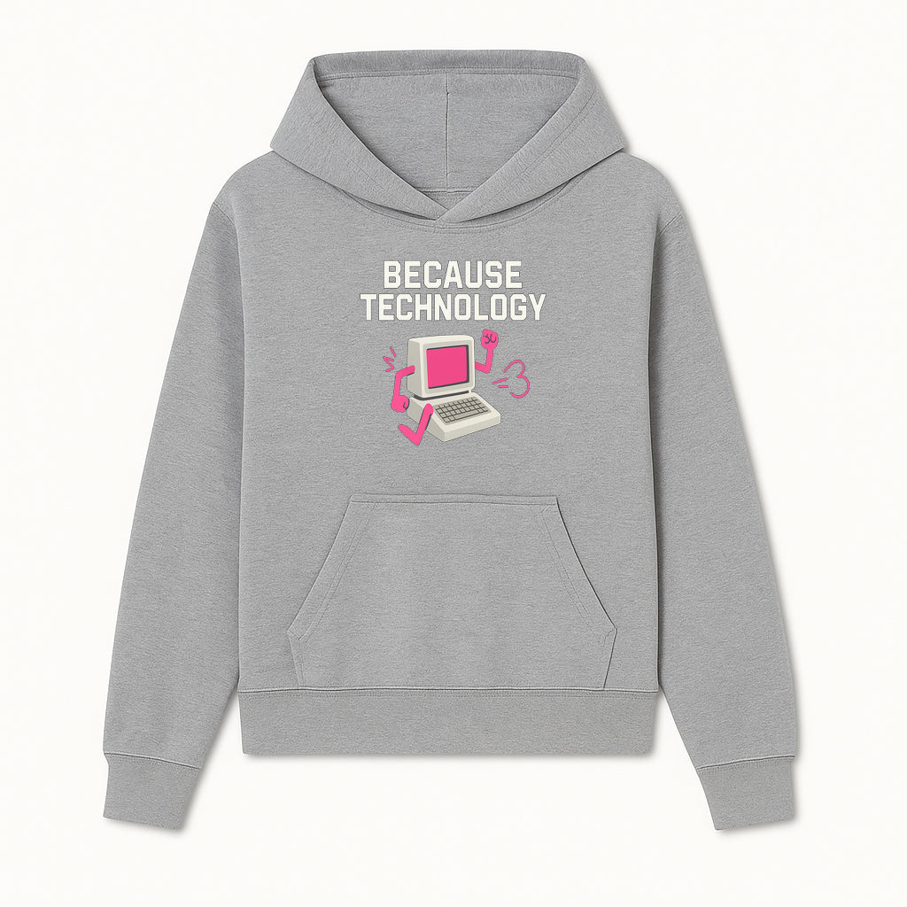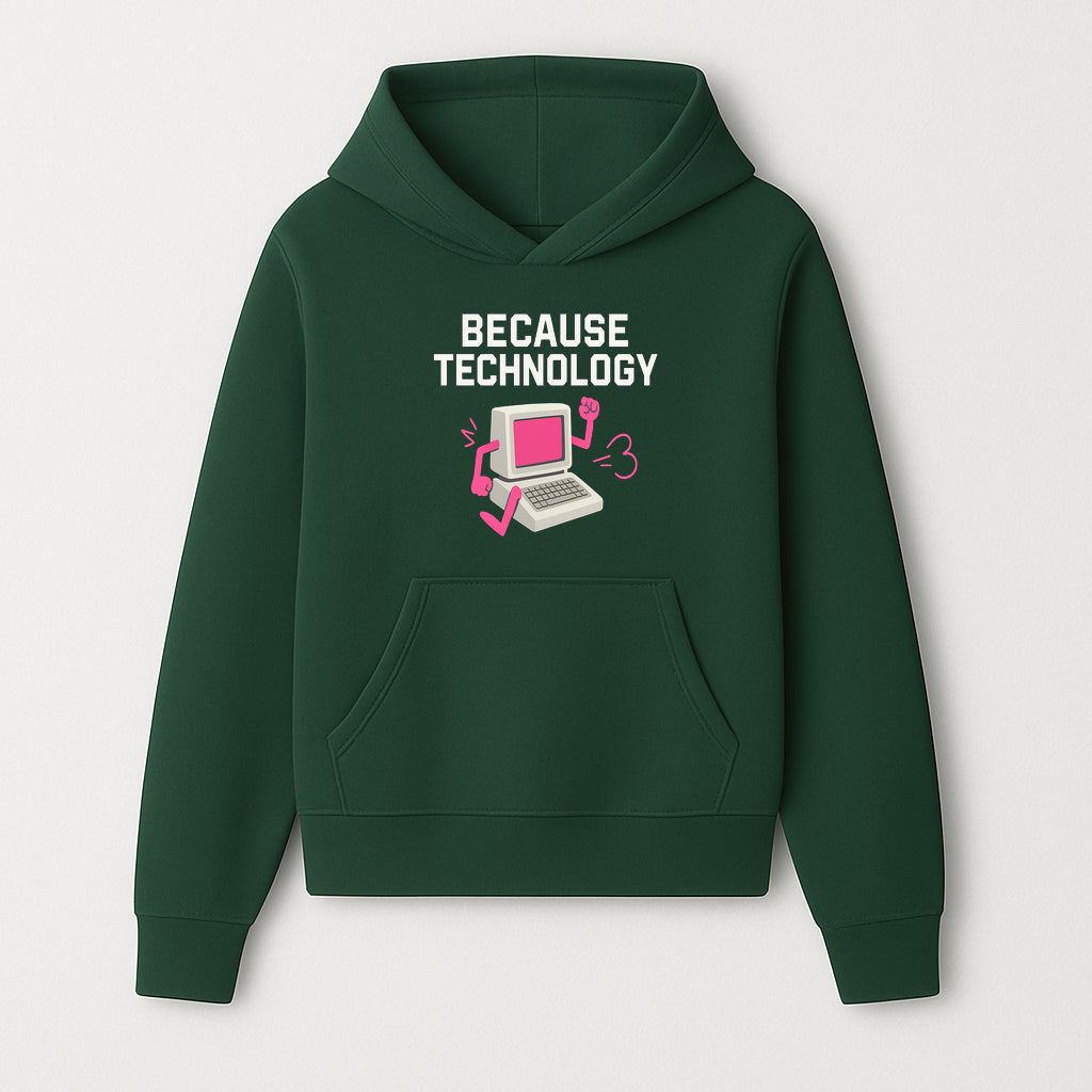 Funny Tech Graphic Tee - 'Because Technology' Retro Computer Design Shirt for Tech Lovers and Gamers - Hoodie