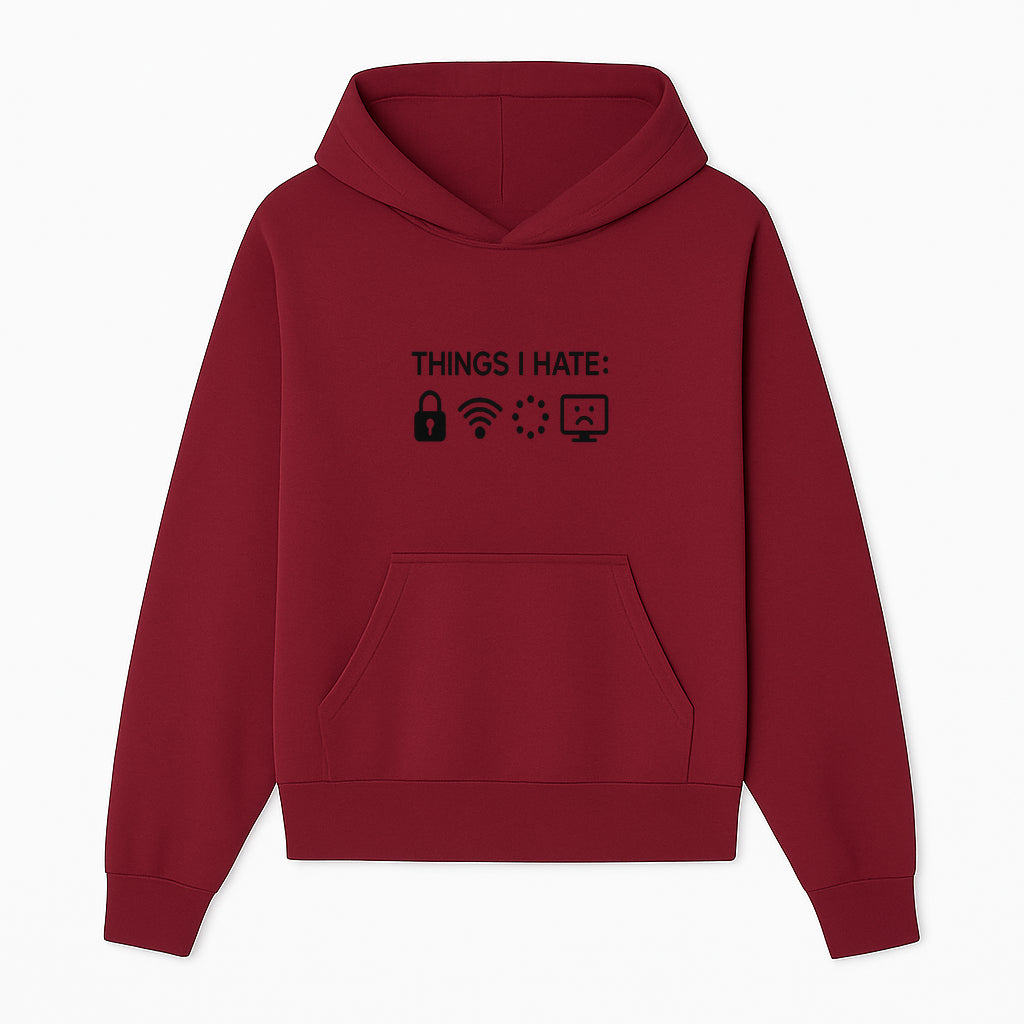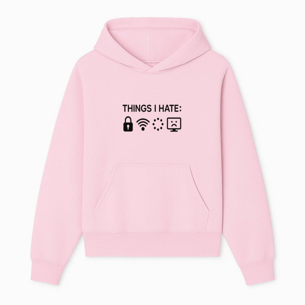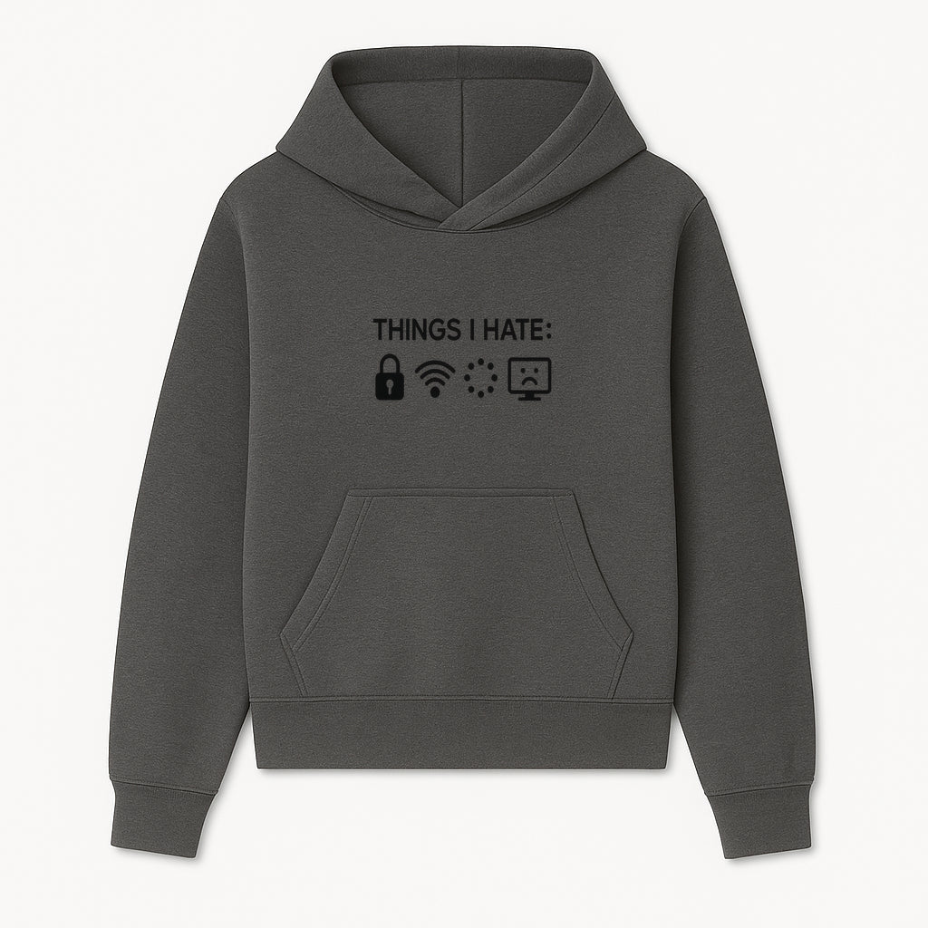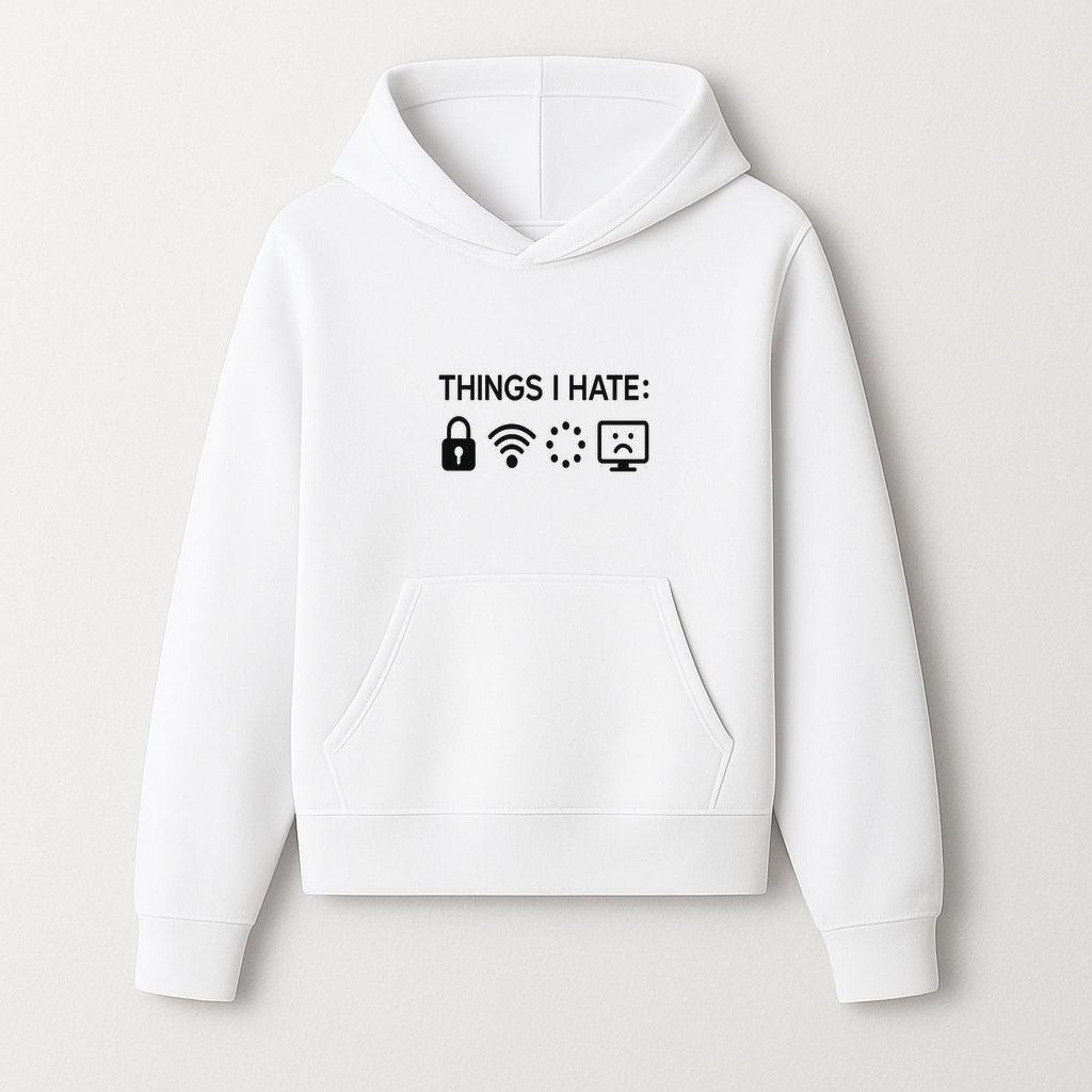 Funny Wall Art Poster - 'Things I Hate' with Icons of Lock, WiFi, Loading, and Sad Computer - Home Decor Print - Hoodie