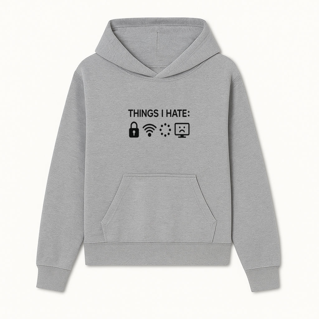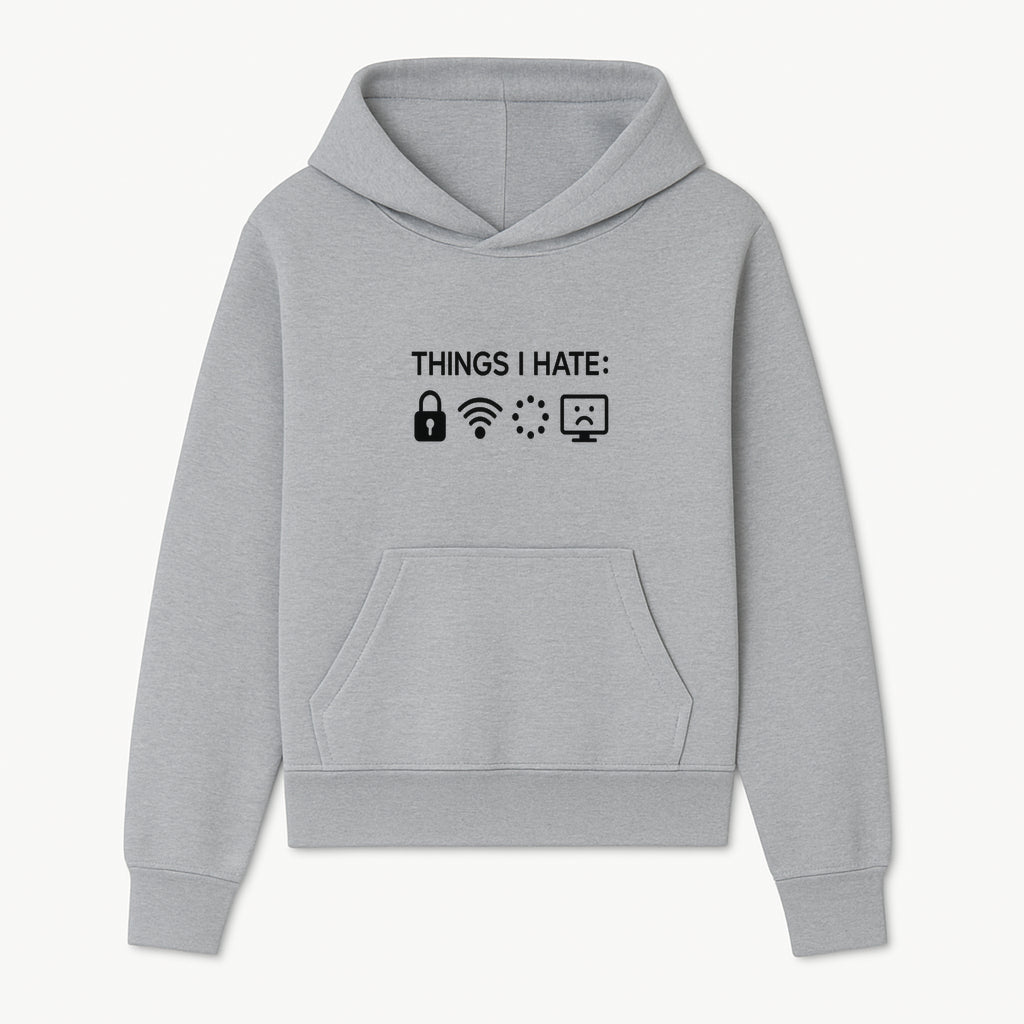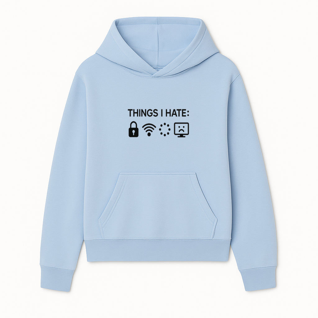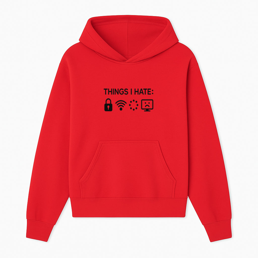 Funny Wall Art Poster - 'Things I Hate' with Icons of Lock, WiFi, Loading, and Sad Computer - Home Decor Print - Hoodie