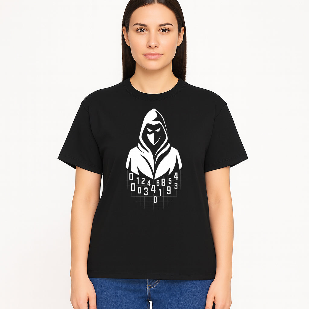 Hacker Hooded Mask Graphic Tee | Cybersecurity Theme | Tech Wear | Cool Gamer Shirt | Gift for Programmers & Tech Enthusiasts - T-shirt