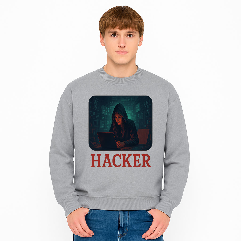 Hacker Themed Digital Art Print - Cybersecurity Artwork for Tech Enthusiasts, Gamer Decor, Modern Wall Art - Sweatshirt