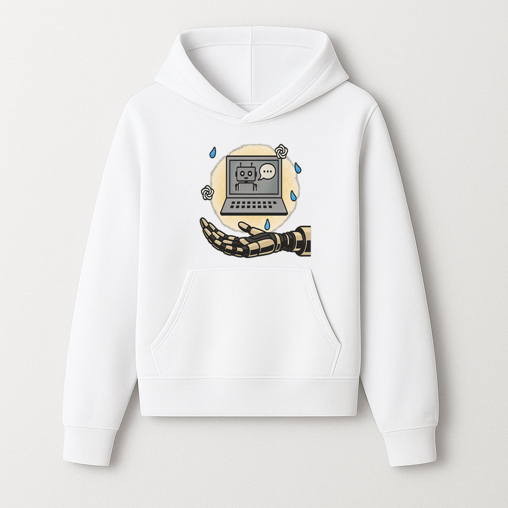 Robot Hand and Laptop Design - Tech-Inspired Art Print for AI Enthusiasts - Hoodie