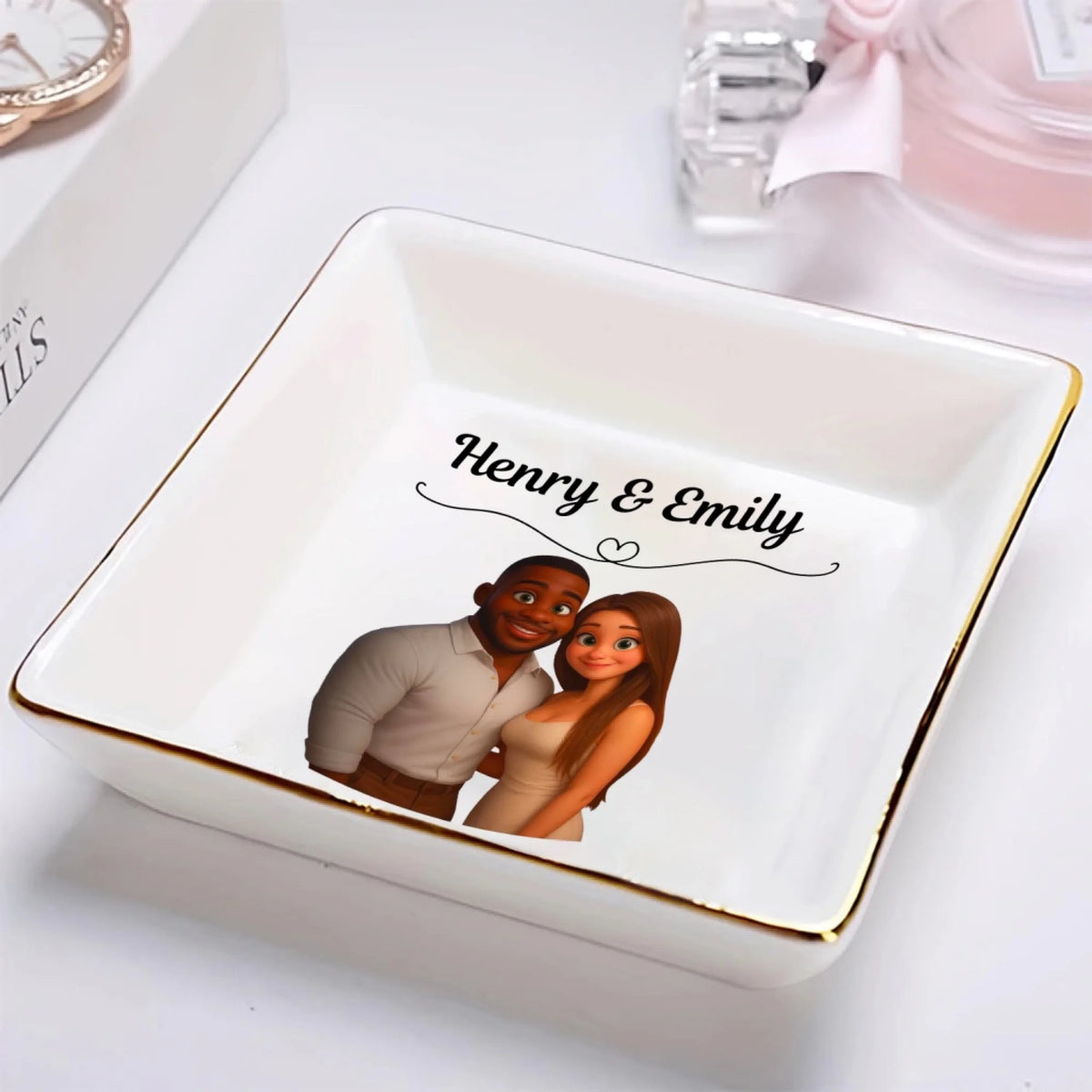 Couple 3D Animated - Personalized Jewelry Dish, Gift For Couple, Drawing 3D Portrait From Photo
