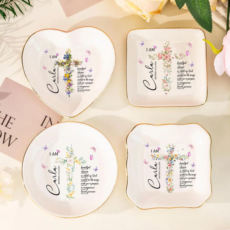 Custom Baptism Jewelry Dish, Baptism Ring Dish with Name & Date, Personalized Gift for Girl, Christian Keepsake Gift, Nursery Decor,Keepsake