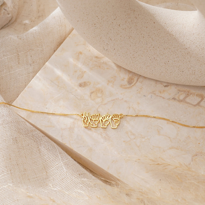 Custom Sign Language Necklace, Name Necklace in Sign Language, Friendship Necklace for Mom, Personalized Necklace for Her, Mothers Day Gift