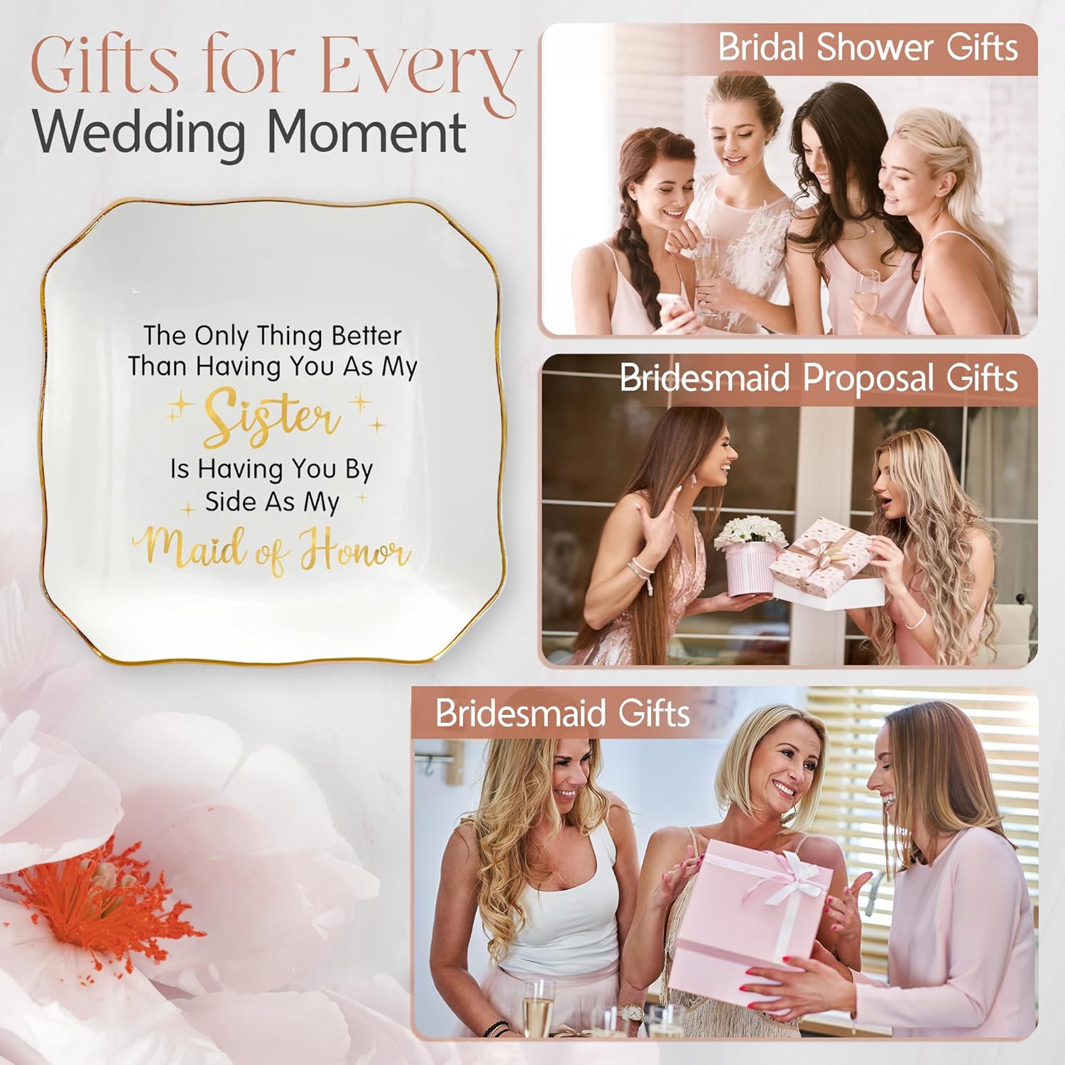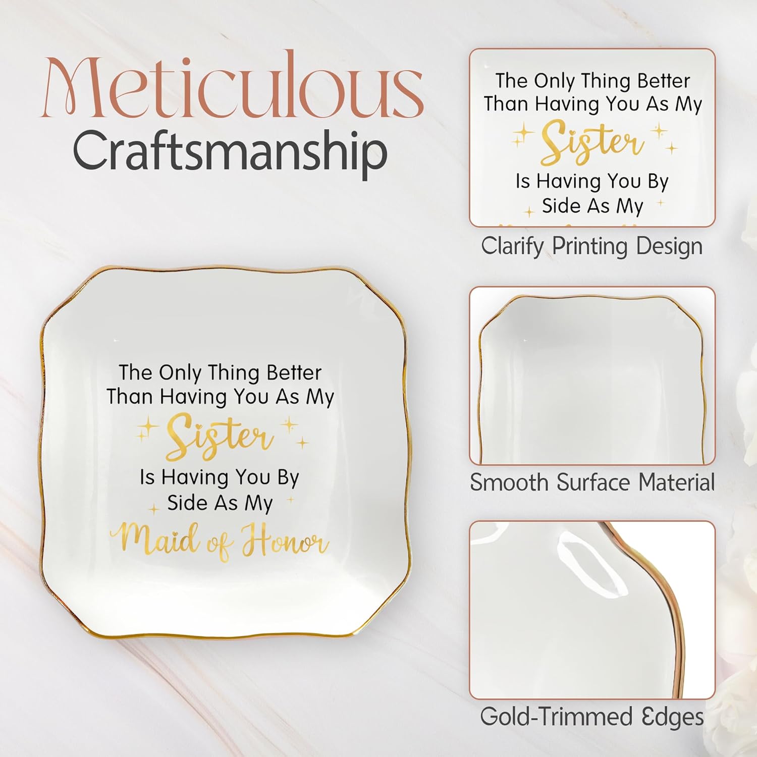 Maid of Honor Gifts for Women - Ceramic Jewelry Dish Tray - Wedding Bridesmaid Gifts for Sister, Ring Holder for Women, Jewelry Tray for Maid of Honor Proposal, Bridesmaid Gift Ideas