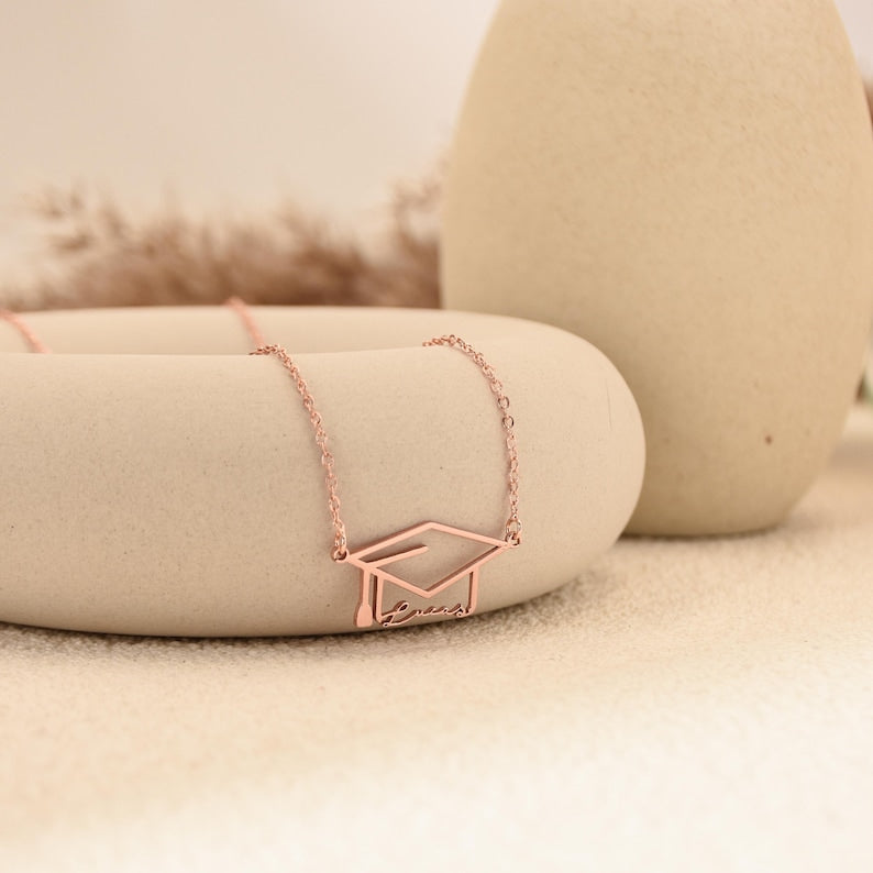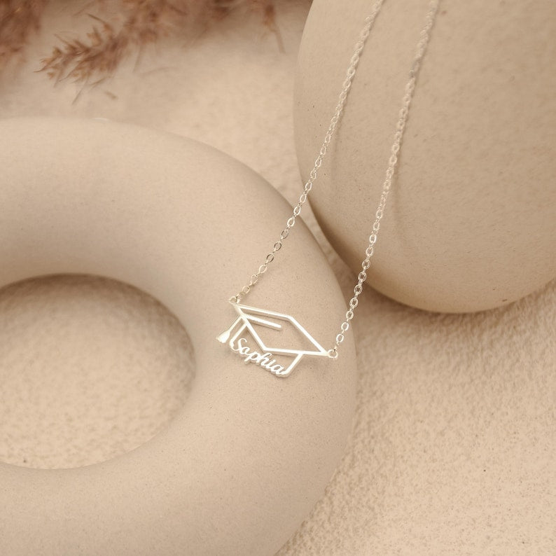 Personalized Graduation Necklace with Graduate's Name, Custom Name Necklace, Gold Name Grad Cap Necklace, Class of 2025 Gift, Gift for Her