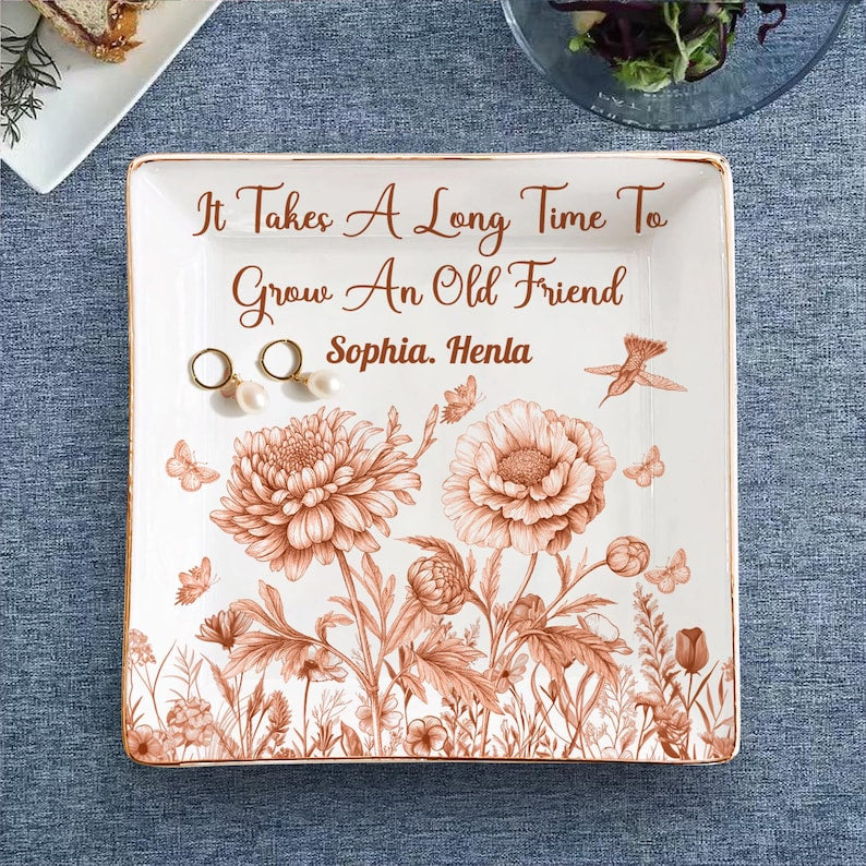 Personalized Jewelry Dish Gifts for Besties, BFF, Soul Sister, If Besties Were Flowers I'd Pick You, Custom Birth Month Flower with Name