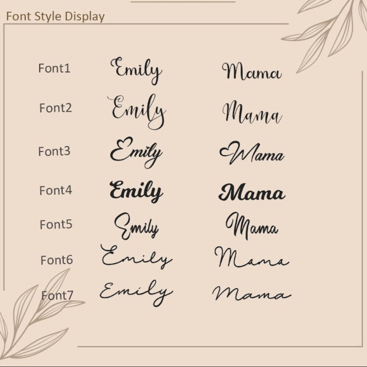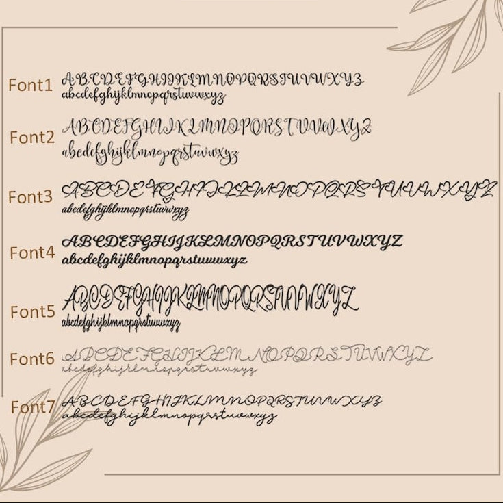 • Simply use the 'PERSONALIZATION BOX' to let us know the NAME and the FONT NUMBER that you would like. (Any font is available, not just our featured fonts)
