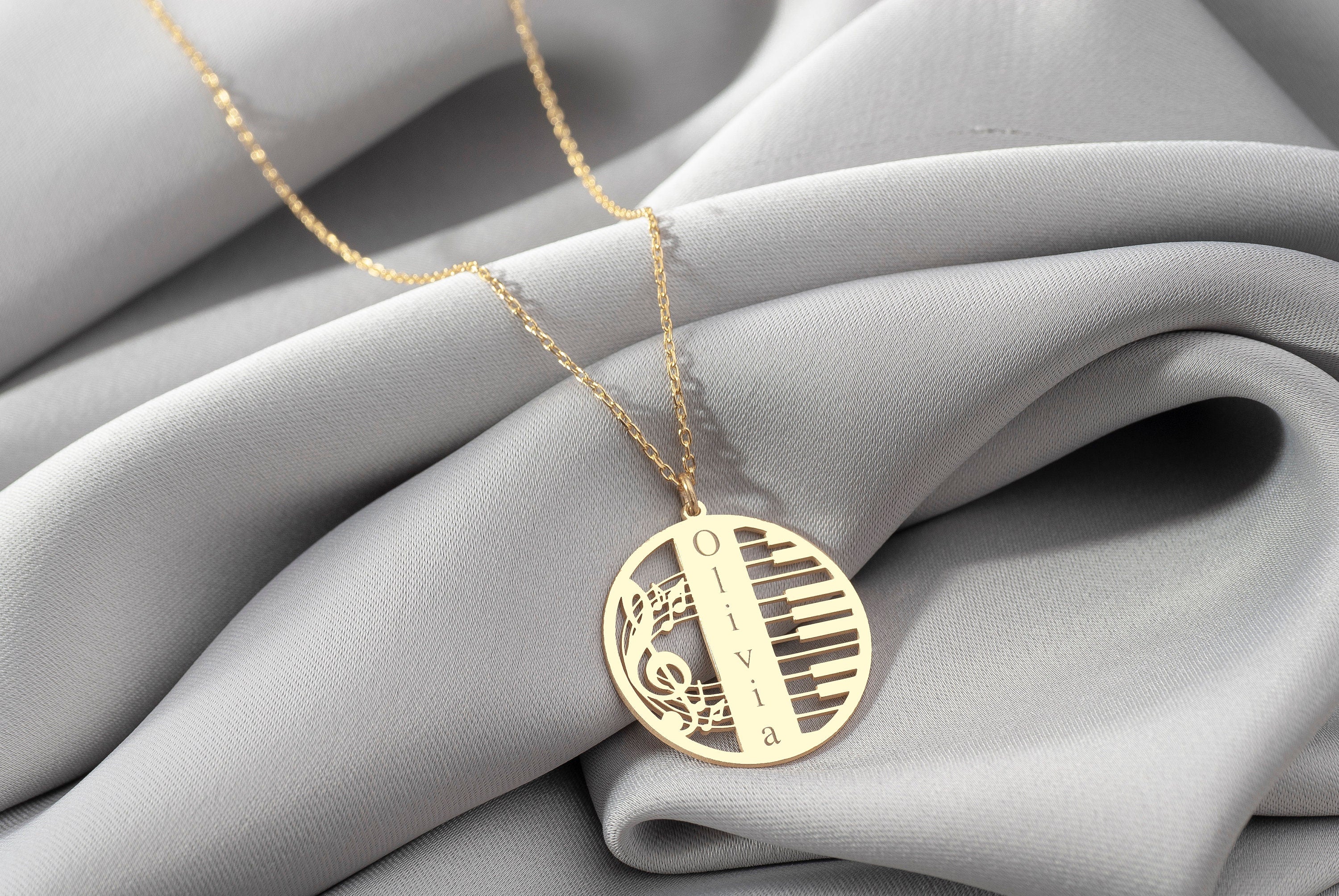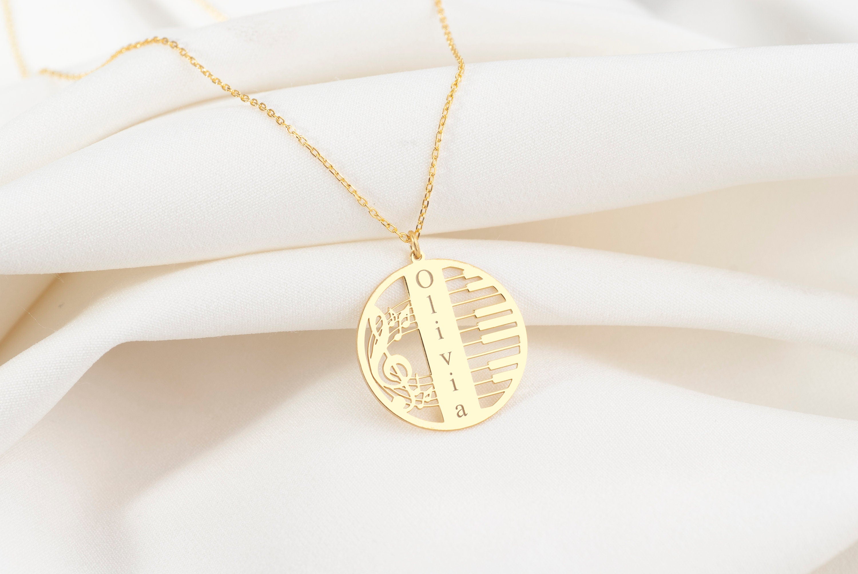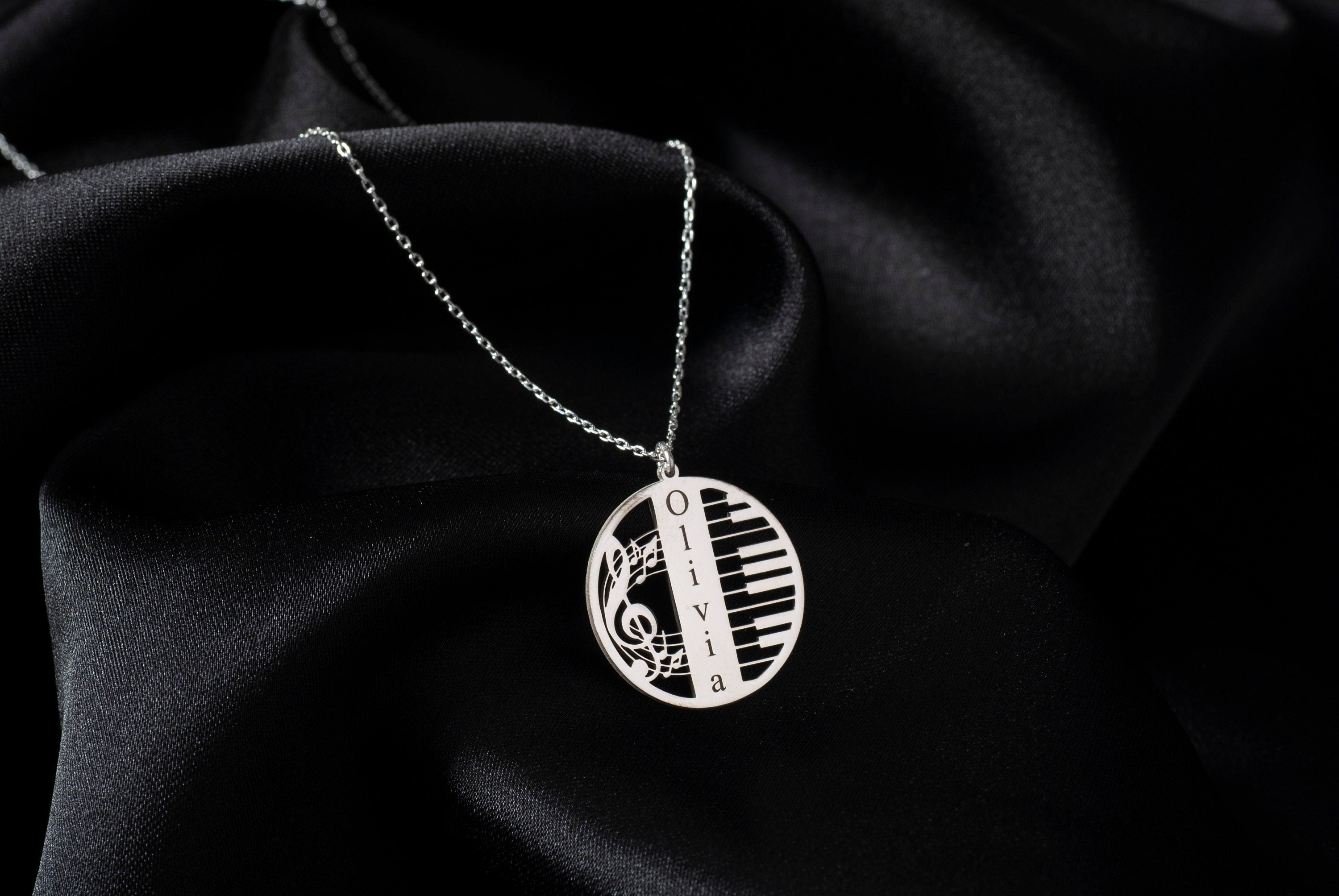 Piano Name Necklace in Sterling Silver - Personalized Music Name Necklace - Custom Piano Pendant - Music Note Necklace - Gift for Musician